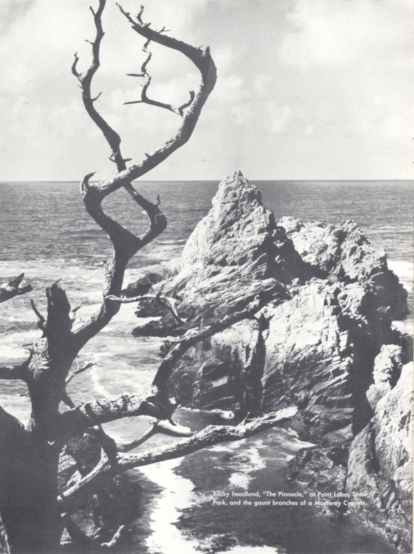ILLUSTRATIONS—Photographs: Cover, pages 2 and 3, Art Malquel, Santa Cruz. Inside front cover, pages 12, 13 (top and center), 16, Wynn Bullock, Monterey. Pages 4 and 5, courtesy The Seaside Company, Santa Cruz. Pages 6 (center and bottom), 8, 9 (bottom), Ed Webber, Santa Cruz. Pages 6 (top), 10, 14 (center), Mike Roberts, Berkeley. Pages 9 (top), 13 (bottom), Rey Ruppel, Monterey, courtesy Monterey Chamber of Commerce. Page 11 (left), California Spray-Chemical Co. Page 11 (right), Cal-Pictures Inc., San Francisco. Pages 14 (top), 15, Josef Muench, Santa Barbara. Page 14 (bottom), Julian P. Graham, Pebble Beach. Page 17, Ansel Adams, San Francisco, courtesy American Trust Company.