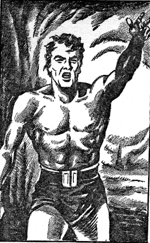 Sean, a desperate grin tightening his lips, threw the book at Klash—he tied the hemp rope about his neck and tried to strangle the Krak; he put the crowbar in Klash's mouth, tried to break the jaws; turned the blow torch against his chest. No response.