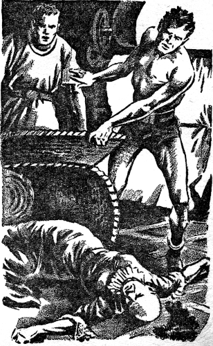 He was sweating as he worked the hamper step by step down the long stairway leading to the street. He was desperately afraid that the hamper would overbalance and topple Shel Lur's body out on the landing before the two guards near the main gate. But Marcia strained her tiny body against the hamper, relieving some of the drag.