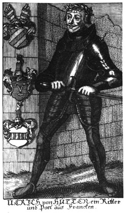 Ulrich von Hutten qui fit de rapides et belles études à l'abbaye de Fulde, a, en peu d'années, publié — depuis un Ars Versificatoria— jusqu'à ce Traité du bois de gayaque (considéré comme guérisseur de l'avarie). Guerrier, érudit, voyageur, connu des humanistes et des princes de l'Europe entière, redouté de la papauté qui tenta en vain de l'amener à Rome pour lui faire subir les douceurs extrêmes d'une conversion raisonnée, aimé de Charles-Quint, il eut une telle renommée inter-européenne que François Ier lui offrit — sans succès — un titre de conseiller. On sait qu'il dut fuir en Suisse où Zwingli lui fit accueil et qu'il s'éteignit dans une île du lac de Zurich, à Uffnau, sous les atteintes du mal qu'il chercha en vain à guérir. Cet ennemi, si haï des moines, gît sans tombe, alors qu'un cénotaphe lui est consacré dans un mur du couvent de Notre-Dame à Einselden.