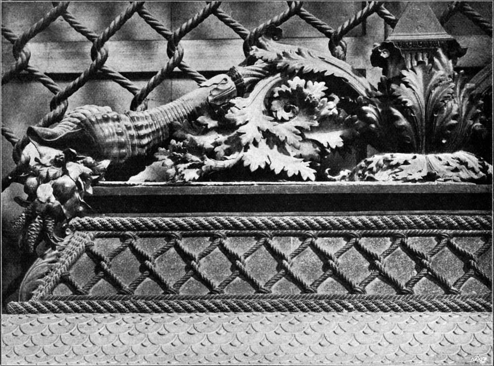 Die Anatomie des Tierleibes zeugt von erstaunlicher Sachkenntnis. Den Zeitgenossen schien sie mit allen Muskeln, Adern und Hautfalten allzu selbstgefällig zur Schau gestellt, und sie urteilten daher, das Roß habe das Aussehen eines abgehäuteten Pferdes. Wir werden darin genau wie in der sorgfältig in Ringellocken aufliegenden Mähne eine längst beobachtete Eigenschaft des überall gewissen[S. 75]haft detaillierenden Meisters aufs neue feststellen.