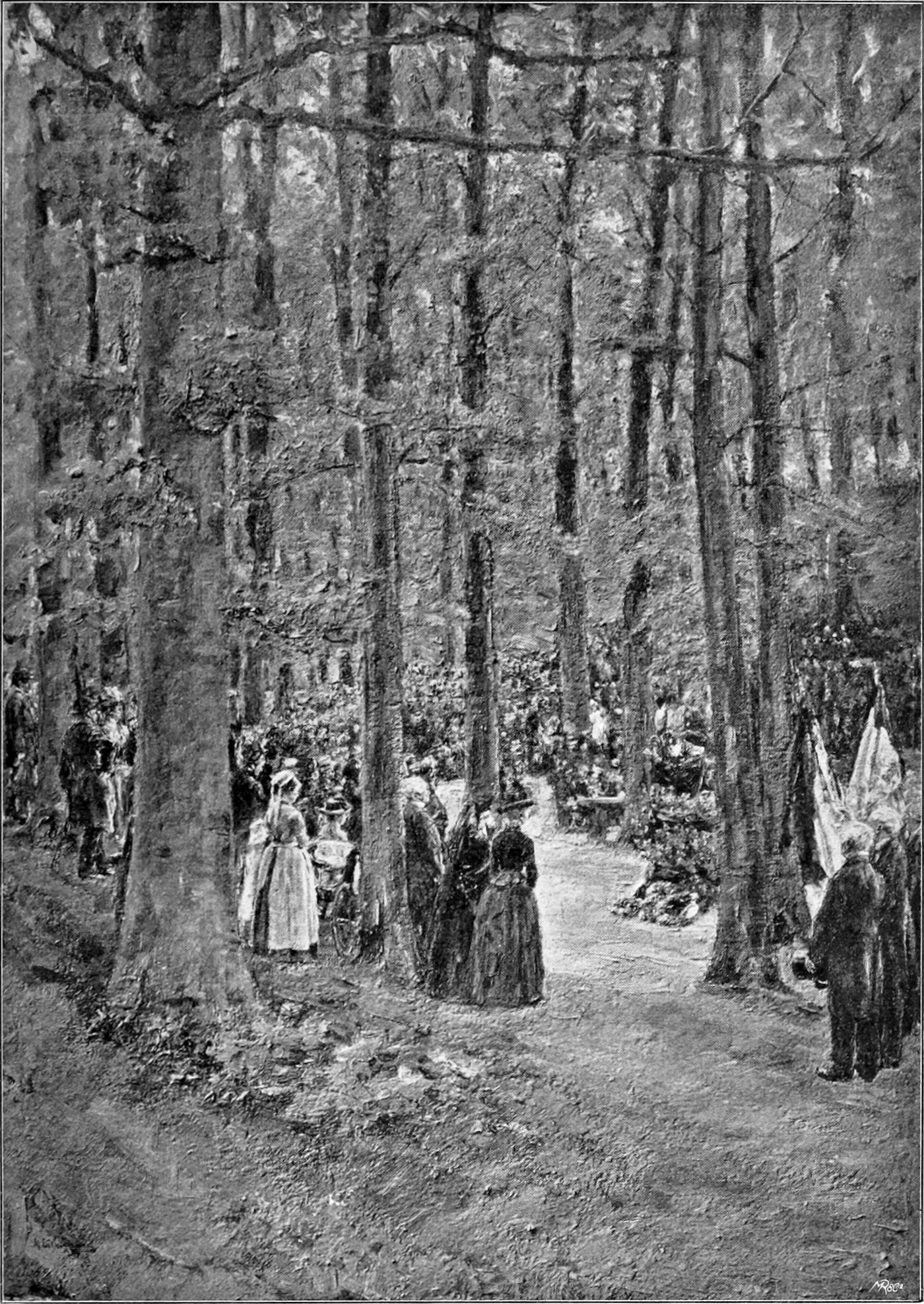 Es gehörte damals einiger Mut dazu, sich als Deutscher nach Frankreich zu wagen. Der Chauvinismus stand in üppigster Blüte, jeder Deutsche wurde beargwöhnt. Liebermann jedoch blieb unangefochten. Munkaczy und sein Talent hatten ihn empfohlen. Außerdem arbeitete er fleißig. Die Werke der Troyon, Daubigny, Corot und vor allem die Bauernbilder Millets, die er in Paris kennen lernte, machten in ihm den Wunsch lebendig, auch selbst noch von den Vorteilen der Fontainebleau-Schule zu profitieren. Im Sommer 1874 zog er nach Barbizon, jenem kleinen, im Walde von Fontainebleau gelegenen Dörfchen, das durch Rousseau und Millet für die Kunst des neunzehnten Jahrhunderts so wichtig geworden ist, wie Weimar für dessen Litteratur. Millet lebte allerdings dort noch unter den[S. 11] „Bäumen, die untereinander reden“; aber Liebermann gelang es nicht mehr, mit ihm persönlich in Berührung zu kommen, zumal Millet bald starb. Um so inniger schloß sich der junge Künstler geistig an den verehrten Meister an. Seine im Salon 1876 ausgestellten „Arbeiter im Rübenfelde“ zeugen besser als alle Worte dafür. Aber das von Millet in die Seele des Berliner Malers gesenkte Samenkorn sollte erst außerhalb Frankreichs wirklich aufgehen, in Holland.