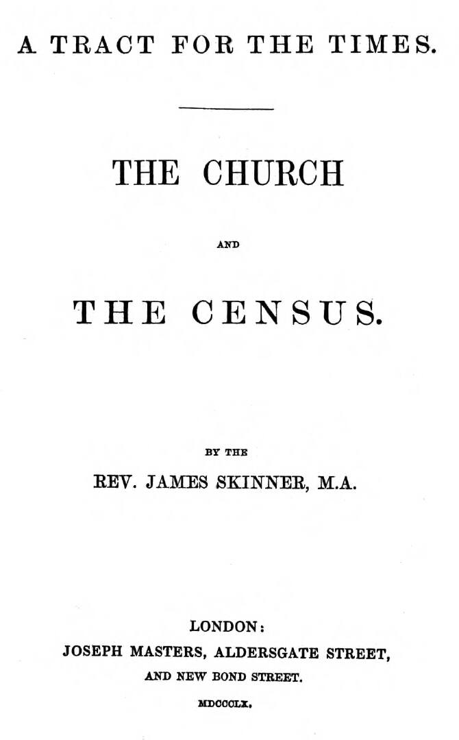 What is the occasion which now presses? While many of us are praising God in grateful love for His unspeakable mercy in vouchsafing us His Truth—His determinate and fixed Truth—in which alone souls are saved—His Truth, as divinely committed to the Church “the pillar and ground of the Truth,”—and handed down from age to age in every land,—His Truth as mercifully retained and maintained in the Prayer Book of the Church of England,—set forth with categorical precision in the three Creeds of universal Christendom, and expanded and applied in the offices of Holy Baptism and the Communion of the Body and Blood of Christ—while we are keeping solemn festival to the Glory of God, and the power of His Truth, the “religious world” is exciting itself with vexing hopes and fears about the decennial p. 8Census which the State is about to take of the religious condition of the country.