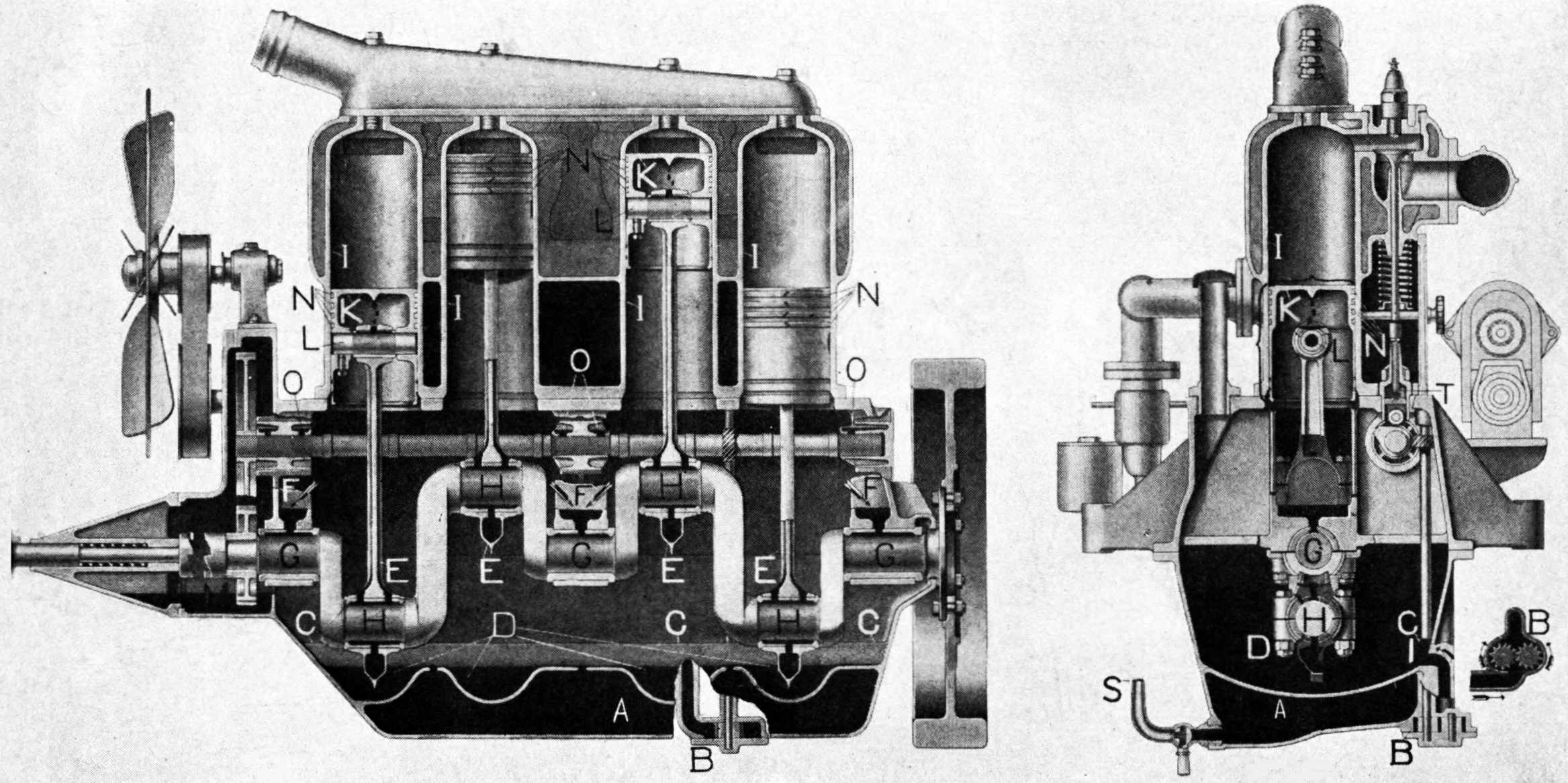 SECTIONAL VIEW OF A MODERN AUTOMOBILE WITH FOUR-CYLINDER ENGINE