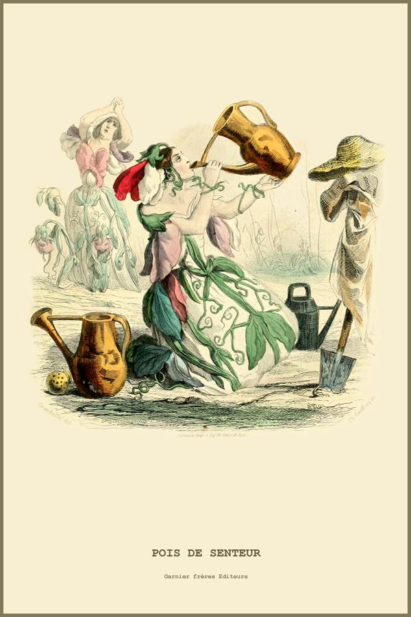 —Que je m’échigne pour ces bons gros petits pois qui travaillent toute la journée à me fabriquer sous leur cosse dure et serrée ces petites boules que je vends si bien, à la bonne heure; mais pour ces fainéants de pois de senteur, allons donc!