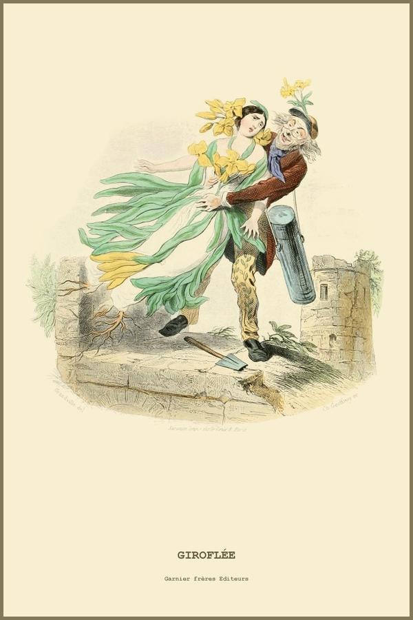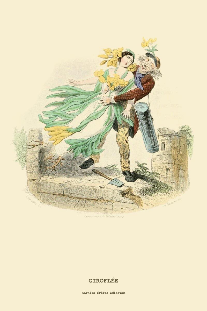 Il fallait me voir, dans ce temps-là, comme j’étais jolie, l’hiver surtout, lorsque je paraissais dans un bal avec mon éclatant habit de Folie! Tout le monde me disait que je représentais au naturel l’ancienne déesse qui présidait aux folles distractions; j’avais sa grâce, son esprit, sa figure piquante, sa légèreté. Hélas! tout cela n’a duré qu’un moment! J’aimais trop le vin de Champagne; c’est lui qui m’a donné cette vilaine maladie que les médecins appellent gastrite. La terre m’est devenue insupportable depuis que je souffre de l’estomac; je retourne vivre au milieu des Fleurs, pour me mettre au lait de rosée, au sirop de brise. Le médecin des Fleurs, qui a nom Zéphire, me rendra sans doute la santé.