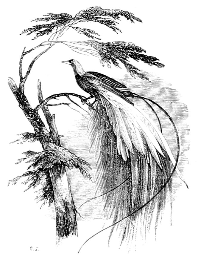 L’Oiseau vola sur une autre branche plus éloignée, en faisant un petit mouvement de tête du côté des Fleurs.