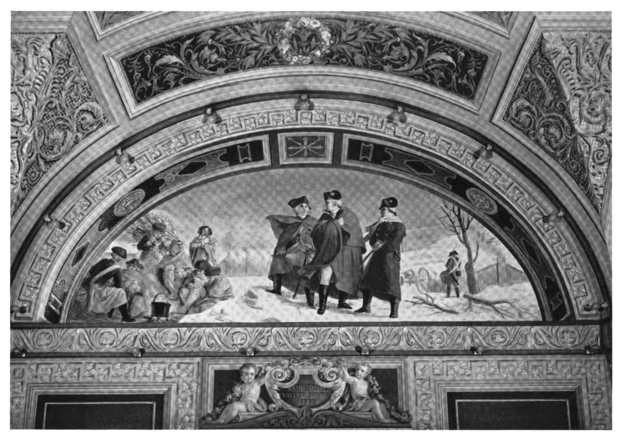 IT WAS late afternoon. The House of Representatives Chamber in the Capitol Building of the United States was deserted, save for one lone figure that stood motionless before the freshly painted mural on the south wall. Everything about this man in long black cape and close fitting beret betokened pride and triumph in achievement—the tense erectness of the body, the tilt of the head, the glow of the cheek and even the angle at which he held his pallet and brush. Suddenly, with strength and determination he said aloud, “I’ll do it,” then he rushed back to the picture, bent possessively over the lower right hand corner and began painting with quick, deft movements. When the lonely figure finally left the Chamber he seemed so satisfied with his work that he never once looked back.