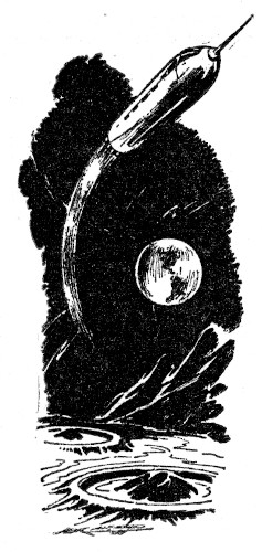 A dead-black spaceship drifted across the face of Luna slowly, and its course, though apparently aimless, was the course of a ship or a man hunting something. It darted swiftly, poised, and then zigzagged forward, each straight-side of the jagged course shorter than the one before. It passed over a small crater and stopped short.