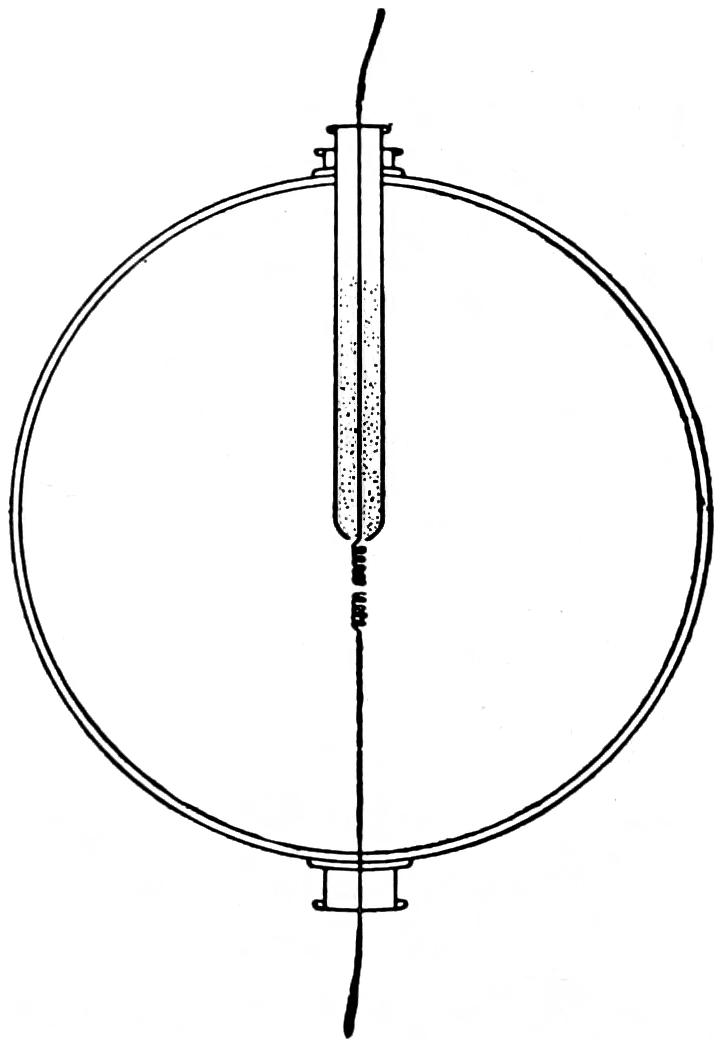 This consisted of a tube about 1¾ inches in diameter and having a length up to 200 feet, in which air at about one thousandth part of atmospheric pressure was made to glow by a very high voltage alternating current.
