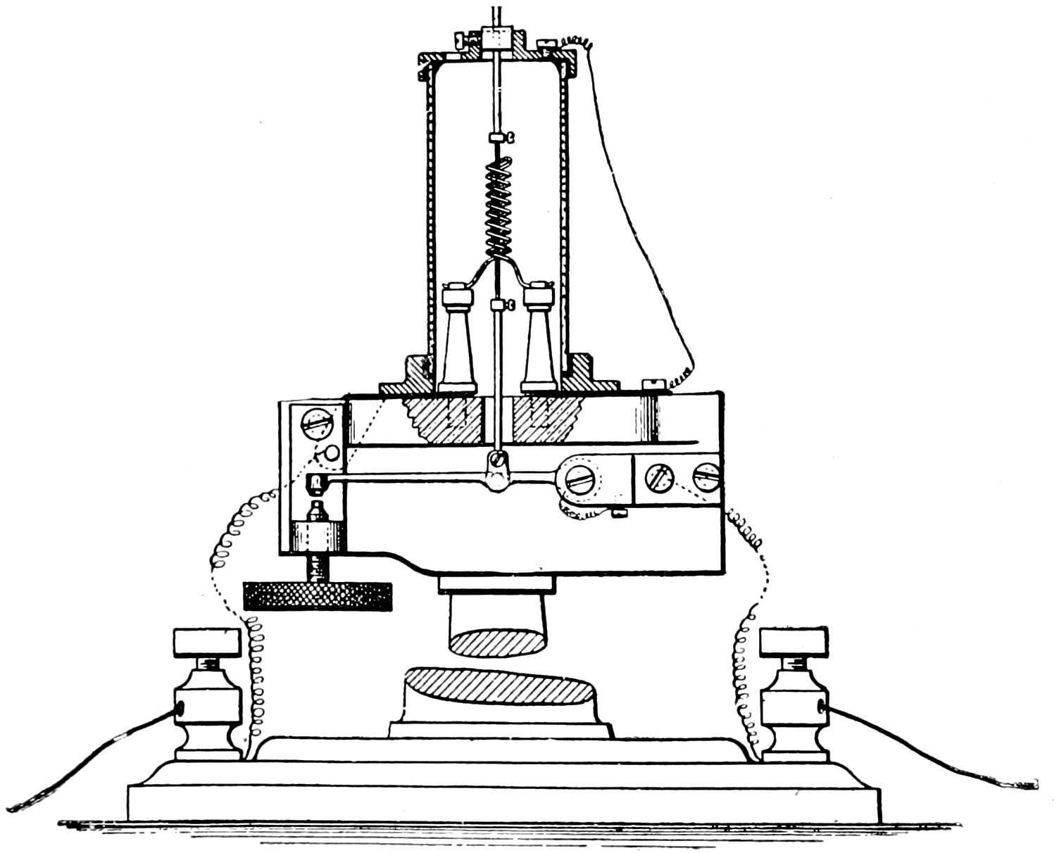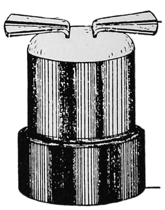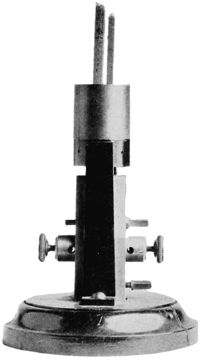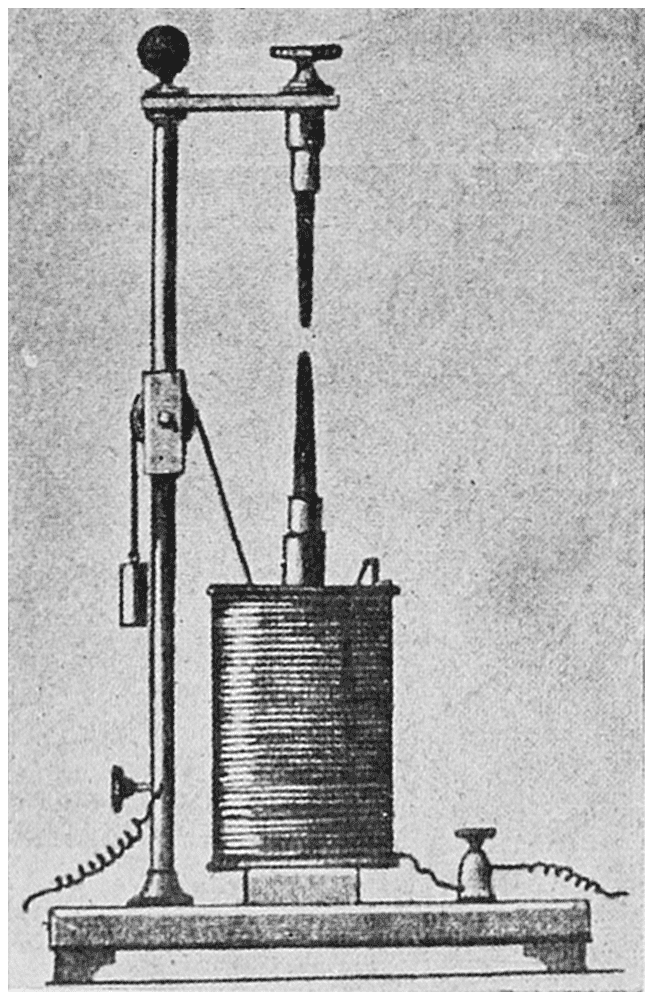 Dr. Walther Nernst, of Germany, investigating the rare earths used in the Welsbach mantle, developed an electric lamp having a burner, or “glower” as it was called, consisting of a mixture of these oxides. The main ingredient was zirconia, and the glower operated in the open air. It is a non-conductor when cold, so had to be heated before current would flow through it. This was accomplished by an electric heating coil, made of platinum wire, located just above the glower. As the glower became heated and current flowed through it, the heater was automatically disconnected by an electro-magnet cut-out.