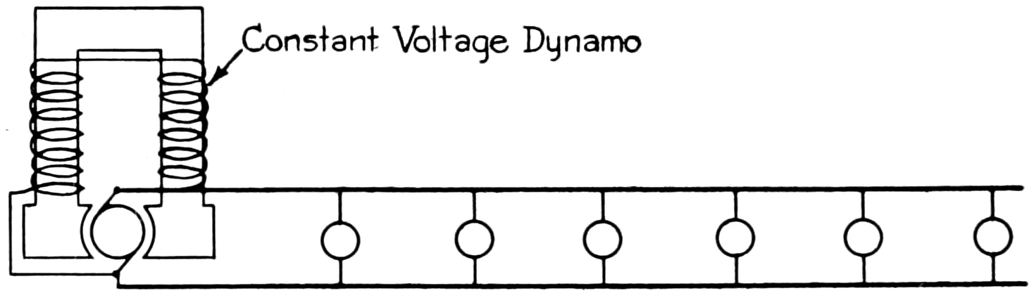 Mention has been made of 110-volt service, 220-volt service, etc. In the days of the carbon incandescent lamp it was impossible to manufacture all lamps for an exact predetermined voltage. The popular voltage was 110, so lighting companies were requested in a number of instances to adjust their service to some voltage other than 110. They were thus able to utilize the odd voltage lamps manufactured, and this produced a demand for lamps of various voltages from 100 to 130. Arc lamps had a resistance (reactance on alternating current) that was adjustable for voltages between 100 and 130.