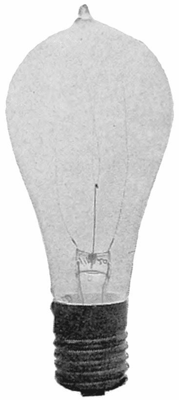 Dr. Werner von Bolton, a German physicist, made an investigation of various materials to see if any of them were more suitable than carbon for an incandescent-lamp filament. After experimenting with various metals, tantalum was tried. Tantalum had been known to science for about a hundred years. Von Bolton finally obtained some of the pure metal and found it to be ductile so that it could be drawn out into a wire. As it had a low specific resistance, the wire filament had to be much longer and thinner than the carbon filament. A great number of experimental lamps were made so that it was not until 1906 that the lamp was put on the market in this country. It had an initial efficiency of 5 lumens per watt and a good maintenance of candle power throughout its life, having an average efficiency of about 4¼ l-p-w. The usual sizes of lamps were 40 and 80 watts giving about 20 and 40 candlepower respectively. It was not quite as strong as the carbon lamp, and on alternating current the wire crystallized more rapidly, so that it broke more easily, giving a shorter life than on direct current. It disappeared from use in 1913.