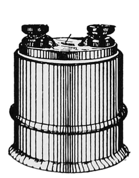 Geissler, a German, discovered sixty odd years ago, that a high voltage alternating current would cause a vacuum tube to glow. This light was similar to that obtained by Hawksbee over two hundred years ago. Geissler obtained his high voltage alternating current by a spark coil, which consisted of two coils of wire mounted on an iron core. Current from a primary battery passed through the primary80 coil, and this current was rapidly interrupted by a vibrator on the principle of an electric bell. This induced an alternating current of high voltage in the secondary coil as this coil had a great many more turns than the primary coil had. Scientists found that about 70 per cent of the electrical energy put into the Geissler tube was converted into the actual energy in the light given out.
