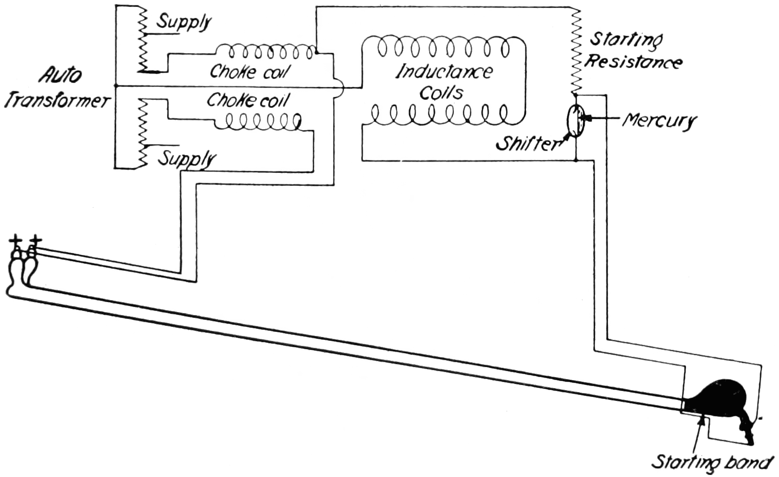 Diagram of Cooper-Hewitt Lamp for Use on Alternating Current.