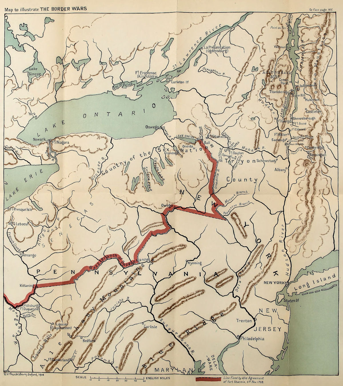 Before the troops left Niagara, a great conference of Indians was held there by Sir William Johnson, who arrived early in July. From all parts they came, except Pontiac’s own following and the Delawares and Shawanoes of the Ohio valley. Even the Senecas were induced by threats to make an appearance, delivered up a handful of prisoners, bound themselves over to keep peace with the English in future, and ceded in perpetuity to the Crown a strip of land four miles wide on both sides of the Niagara river. About a month passed in councils and speeches; on the 6th of August Johnson went back to Oswego, and on the 8th Bradstreet went on his way.