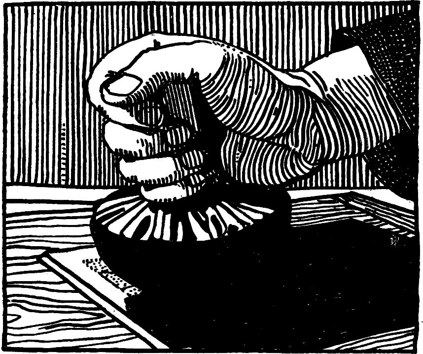 9. Die Druckfarbe will trotz kräftigen Reibens mit dem Beinstab nicht auf’s Papier.