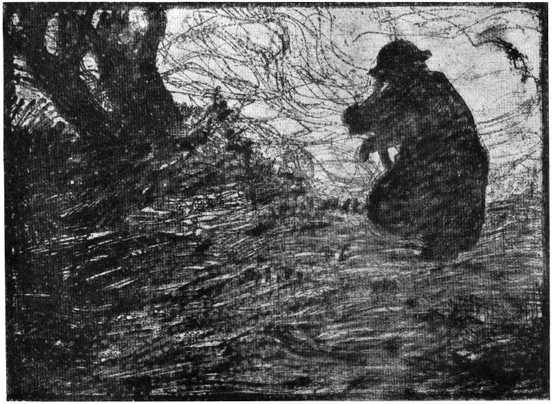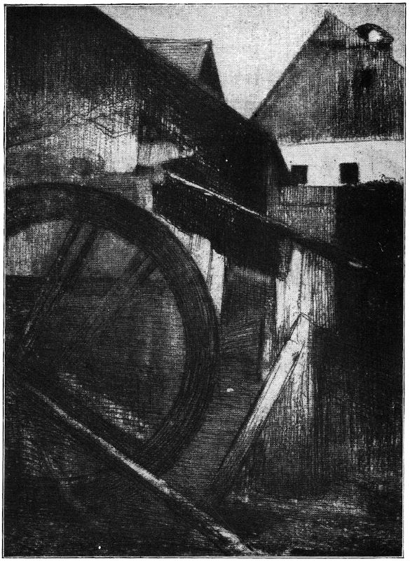 Nicht jedes Motiv, nicht jede Bildidee eignet sich gleich gut für eine Durchführung in Aquarell, in Holzschnitt, für eine Radierung oder für ein Ölgemälde. Für den Radierer ergibt sich daraus der Schluß, daß er nicht ohne Überlegung an sein Werk gehen darf. Linienschönheit, Tonschönheit, das sind die Mittel, mit denen die Radierung arbeitet. Sie wird zum erschöpfenden Ausdruck,[89] wenn sie im Motiv, in der Idee, Verwandtes findet und dieses mit ihren Mitteln also zu einer höheren Einheit erheben kann.