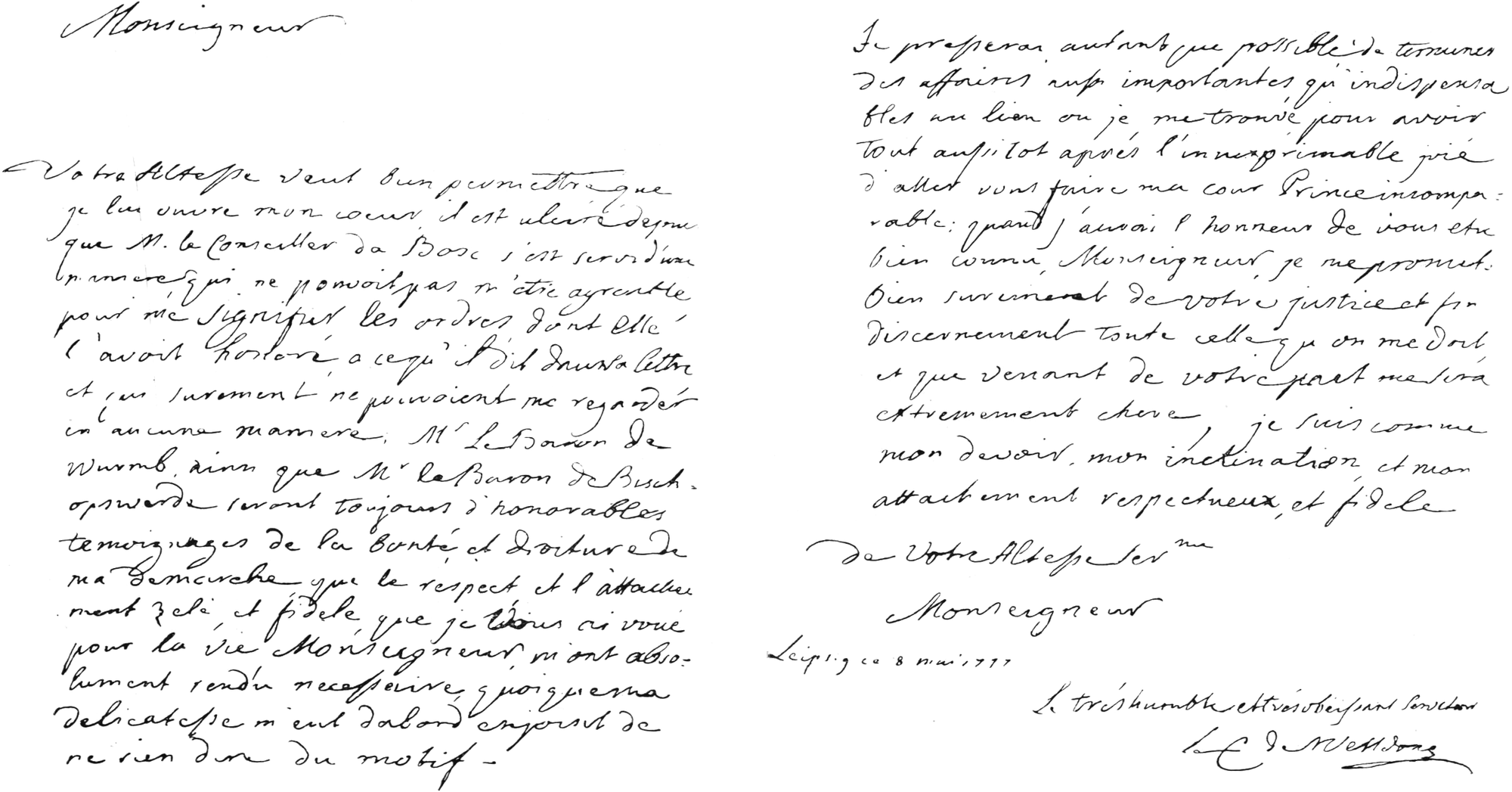 [437] Graf Camillo Marcolini (1739-1814), kursächsischer Kabinettsminister. Über seine Verhandlung mit Saint-Germain liegen im Hauptstaatsarchiv in Dresden keinerlei Nachrichten vor.