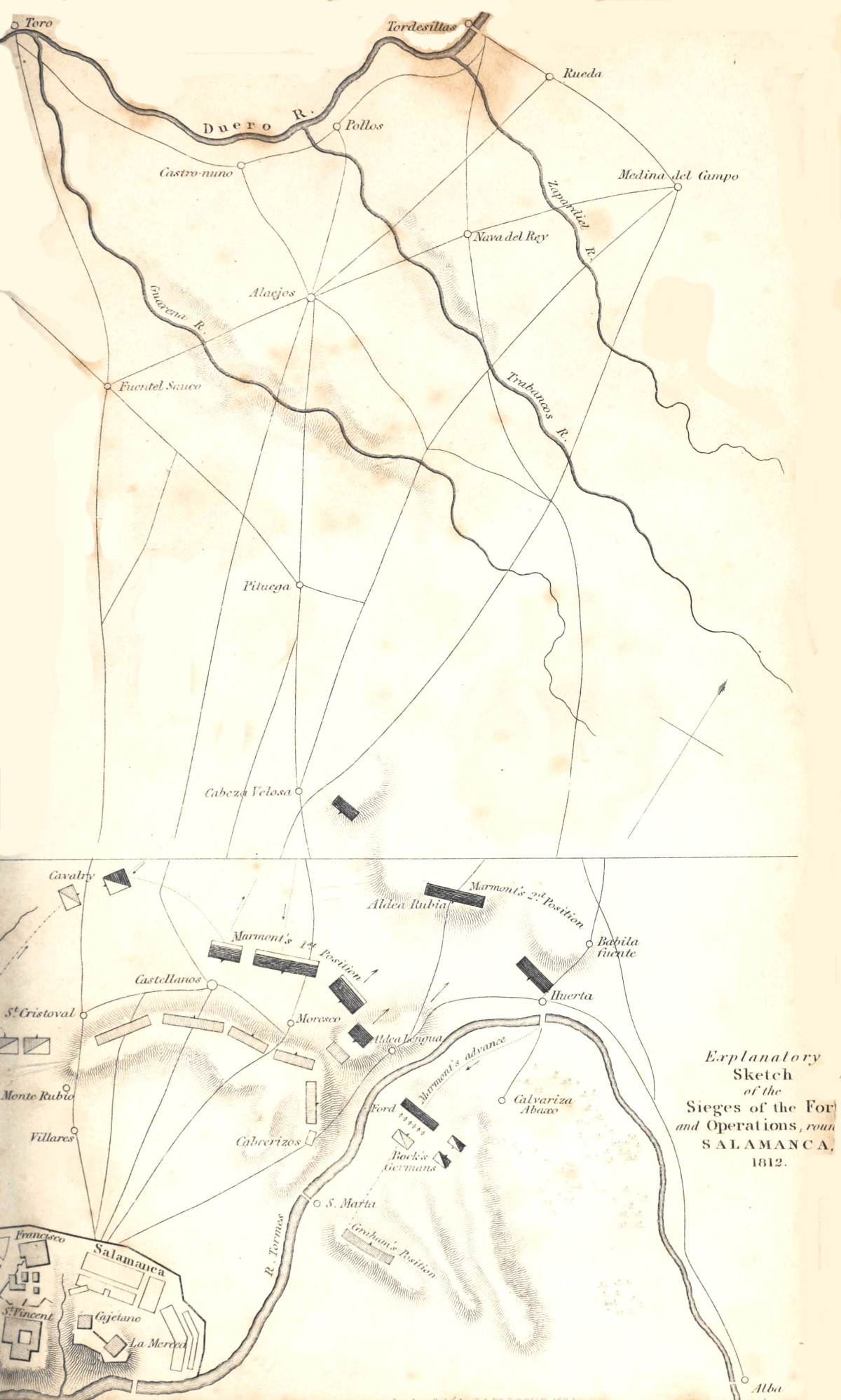 | Bonet arrives in the French camp—Marmont passes the Duero—Combat of Castrejon—Allies retire across the Guarena—Combat on that river—Observations on the movements—Marmont turns Wellington’s flank—Retreat to San Christoval—Marmont passes the Tormes—Battle of Salamanca—Anecdote of Mrs. Dalbiac | 147 |