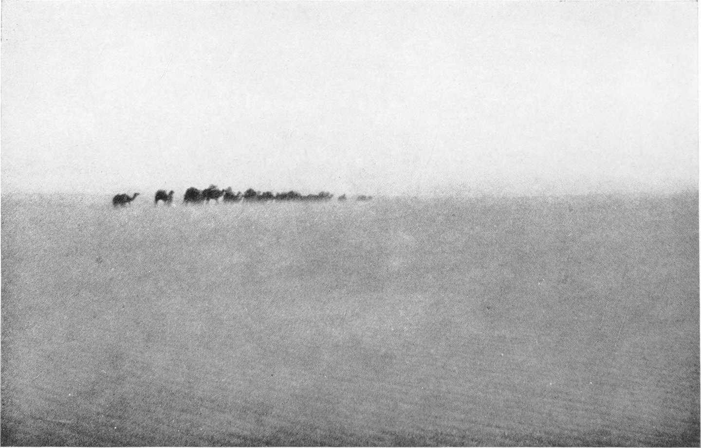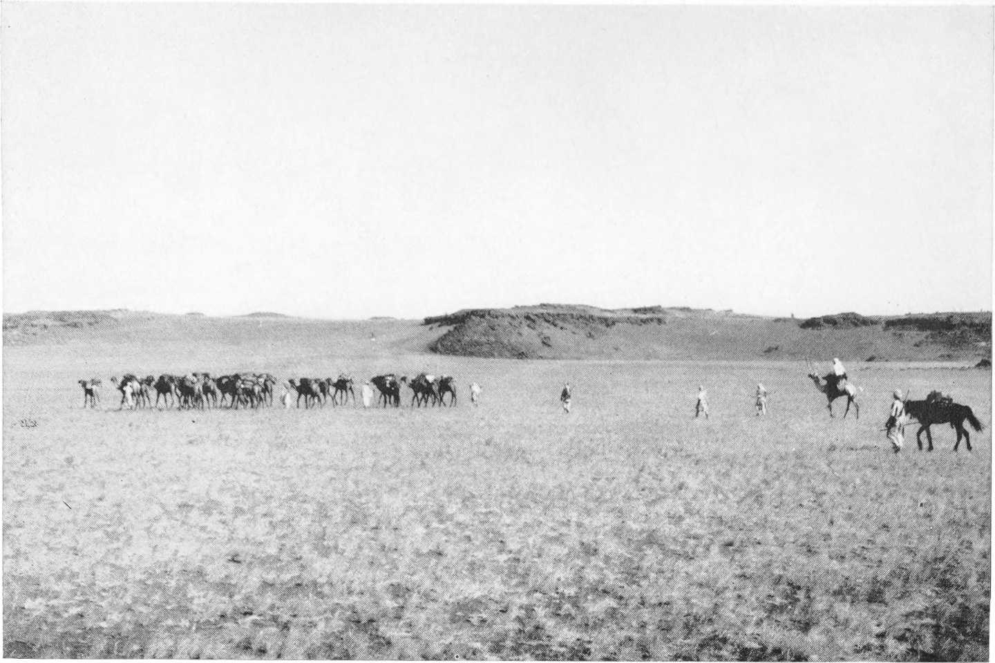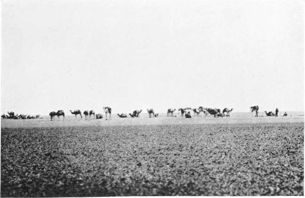 At this point begins a wide barren stretch of flat and desolate country, devoid of rocks of any particular geological interest beyond the thin covering of “sand and alluvium” which extends for nearly 200 km. (four days of monotonous marching) along the route to the south.