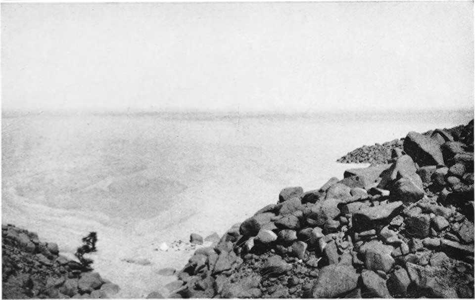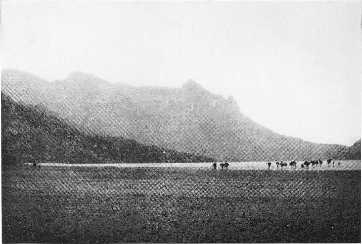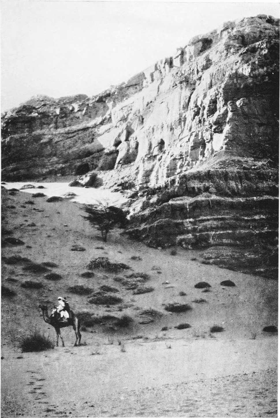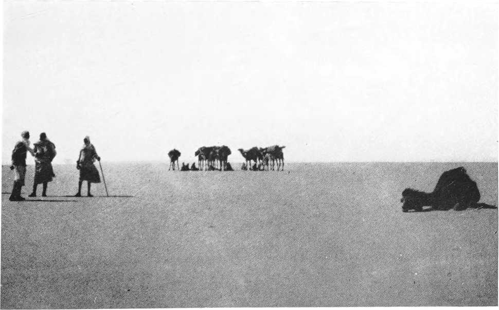 At this point begins a wide barren stretch of flat and desolate country, devoid of rocks of any particular geological interest beyond the thin covering of “sand and alluvium” which extends for nearly 200 km. (four days of monotonous marching) along the route to the south.