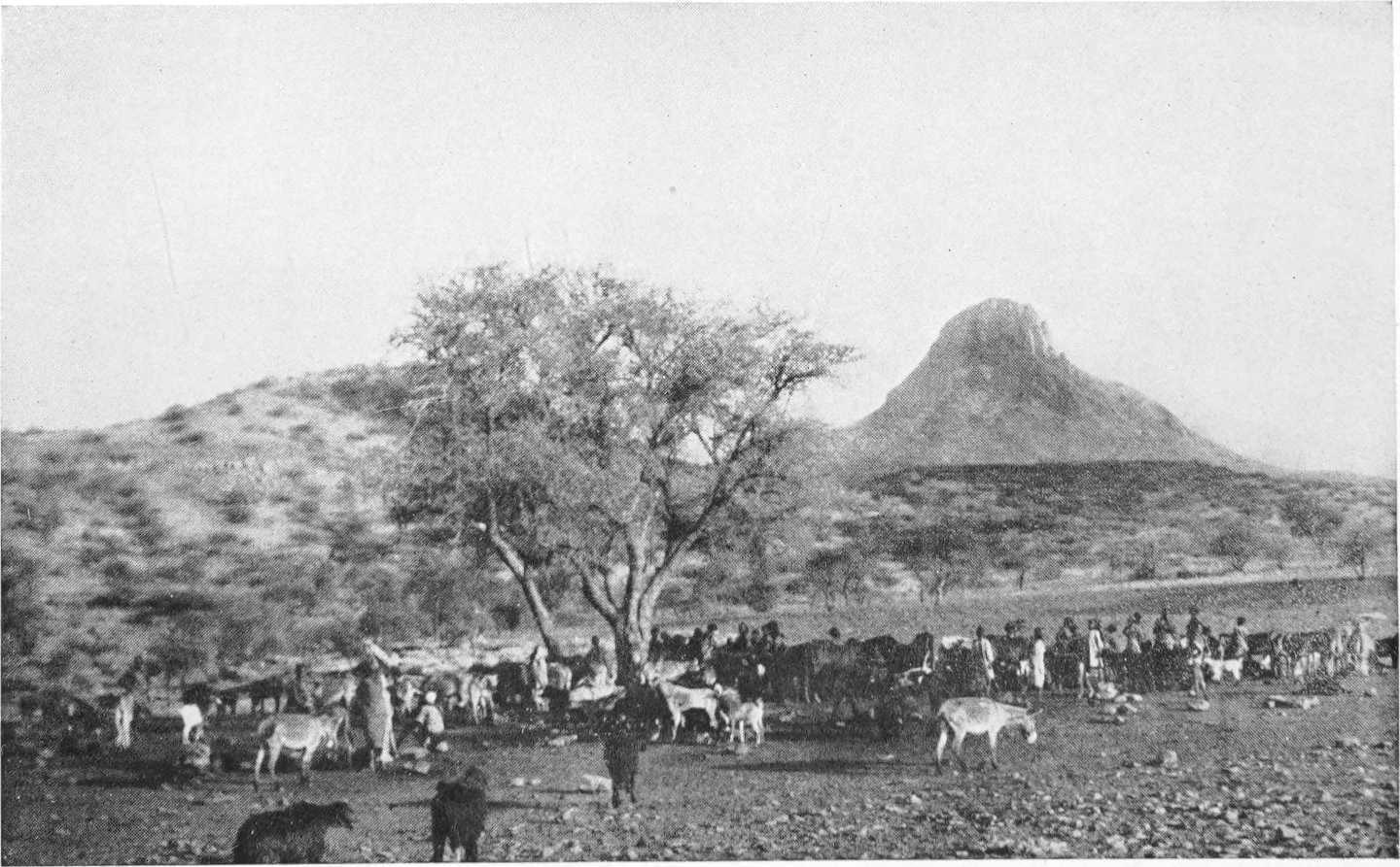 Approaching this point, still another change in the general aspect of the country met the eye of the explorer: the brighter coloring of the sandstones gave place to the duller browns, grays, and blacks of an abrupt range of igneous hills, the position on the ground where the igneous rocks come up through the Nubian Sandstones being approximately 25 km. north of Arkenu.