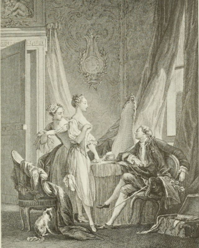 There were exceptions, of course, to the common rule that in the period of our first Georges, and of Louis the Fifteenth, engraver’s work was translation. Hogarth, in the first half of the century—about the time when the French line engravers were occupied with their quite exquisite translations of the grace of Watteau, Lancret, and Pater—wrought out on copper with rough vigour his original conceptions of the Rake’s[Pg 19] and of the Harlot’s Progress, and not a few of his minor themes; but when it came to the rendering into black and white of those masterly canvases of Marriage à la Mode, professional engravers, such as Ravenet and Scotin, were employed to admirable purpose, and a little later the very colours of the canvas seemed to live, the painter’s very touch seemed to be reproduced, in the noble mezzotints of Earlom. And the immense successes of this reproductive engraving, with the art of Hogarth, brings us back to the truth of our earlier proposition; the period was a period of interpretation, not of original work, with the engraver. The whole French Eighteenth Century School, from Watteau down to Lavreince, is to be studied, and collected, too, in Line Engraving. The School is not invariably discreet in subject: Lavreince has his suggestiveness, though rarely does he go beyond legitimate comedy, and Baudouin, François Boucher’s son-in-law, has his audacities; but against these is to be set the dignified idyl of the great master of Valenciennes; the work of Watteau’s pupils, too; the works of Boucher; Massard’s consummate rendering, in finest or most finished line, of this or that seductive vision of Greuze; the stately comedy of Moreau le jeune; and, as I have said already, the excellent interpretations of the homely, natural, so desirable art of Chardin.