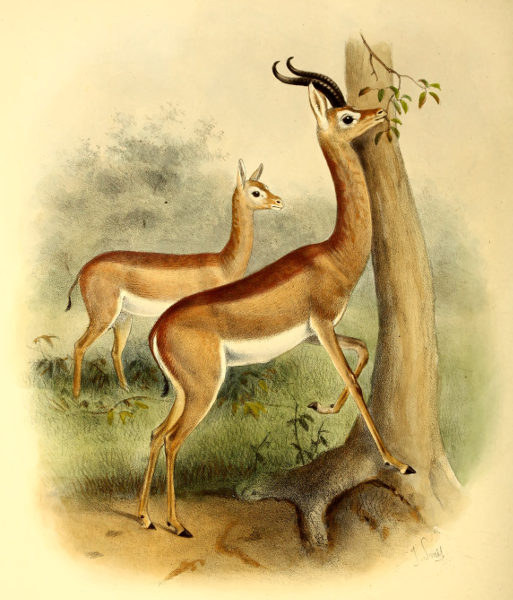 Sketch of Gerenuk, ♂ and ♀, in characteristic attitudes.