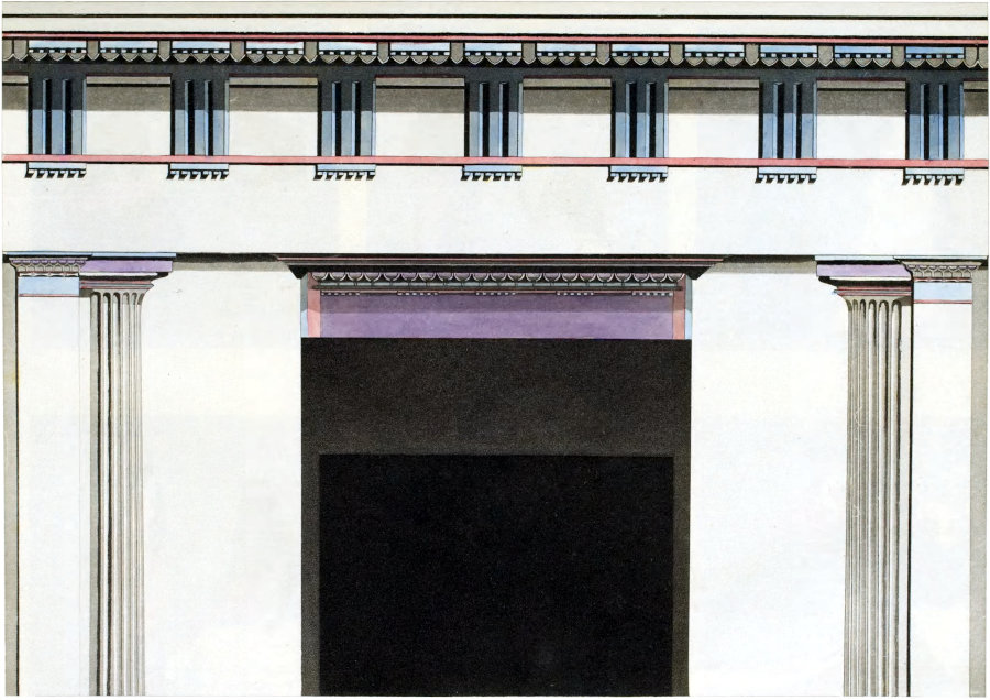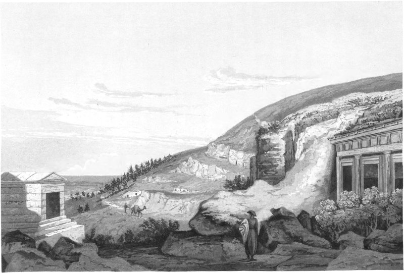 | Description of the Fountain — Excavations which enclose it — Sculptured Tablet discovered at the entrance of one of the Chambers — Early Character of its Style — Beautiful Bas-Relief in white Marble discovered near the Fountain — Indications of Porticoes in front of the excavated Chambers — Greek Inscription cut over one of them — Remains in front of the Fountain — Aqueduct above it — Peripteral Temple, probably of Diana — Female Statue discovered there — Position of Cyrene — Delightful View from the Town — Excavated Galleries and Tombs — Nature and Style of the Tombs — Variety displayed in the disposition of their Interiors — Remains of Painting discovered in them — Suite of what appear to be Allegorical Compositions, painted on the Metopes of one of the Doric Tombs — Practice, at Cyrene, of painting the several Members of Architecture — Remarks connected with this Practice | 424 |