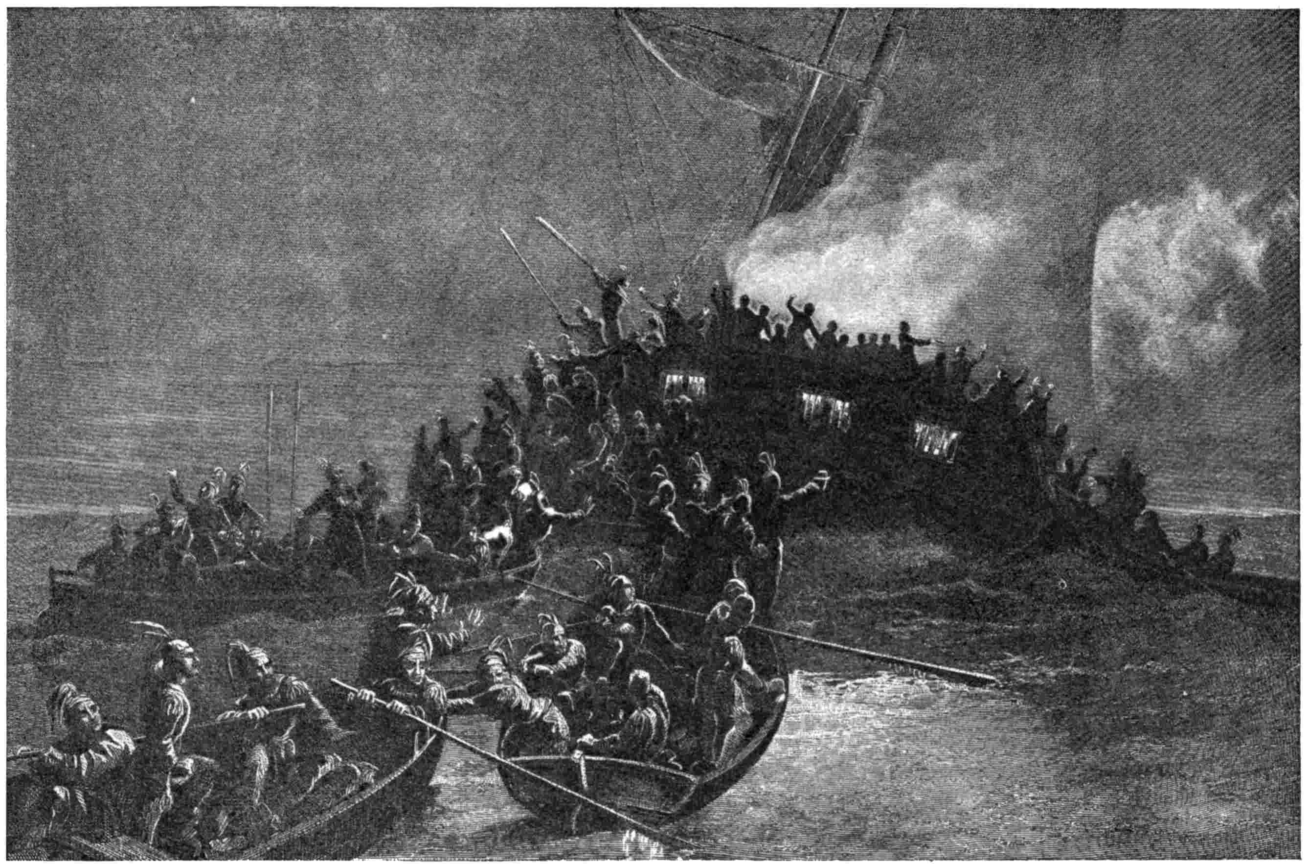 The lieutenant returned to his ship. Captain Humphreys of the Leopard mounted the rail and shouted: