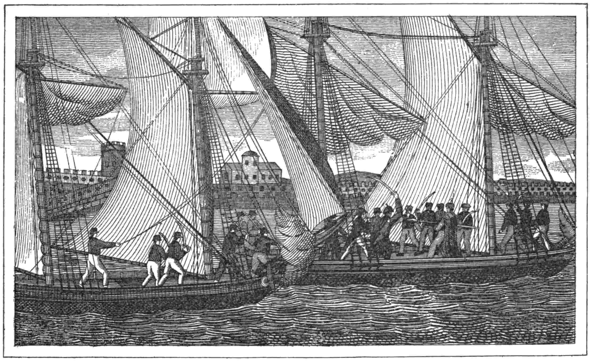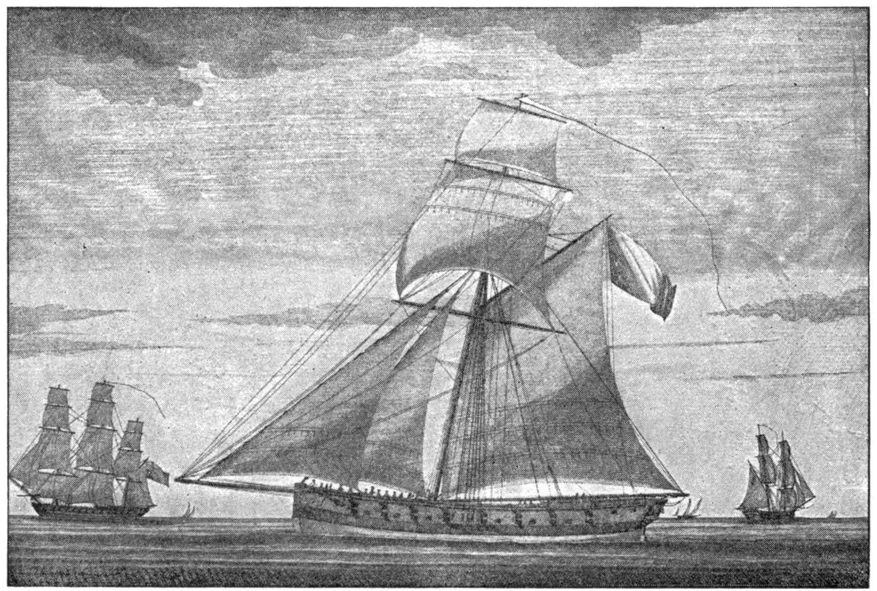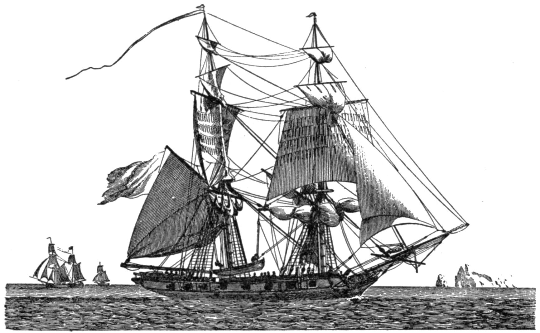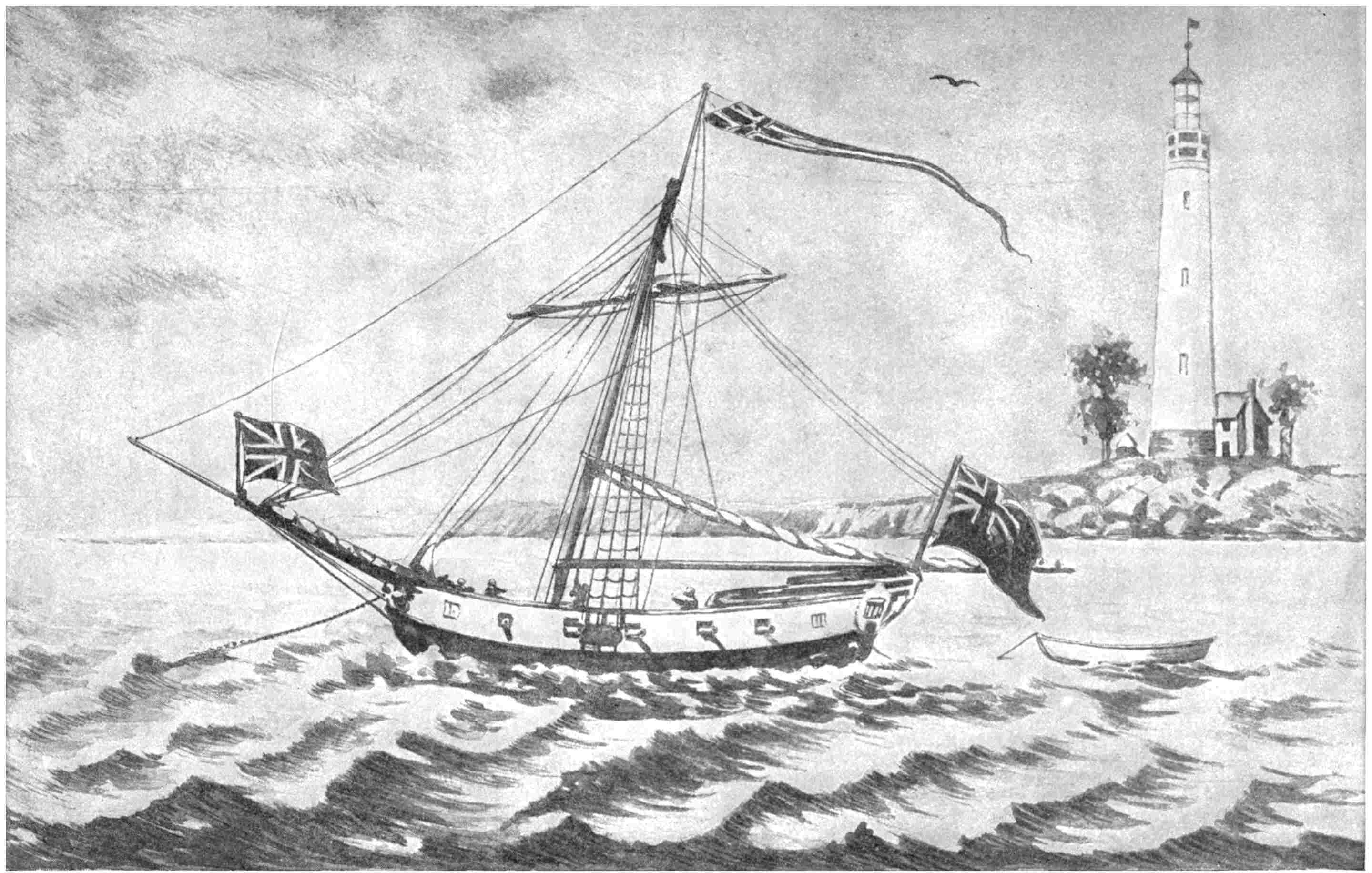 | A British Armed Sloop. (From a very rare engraving, showing the first lighthouse erected in the United States—on Little Brewster Island, Boston Harbor), | 19 |