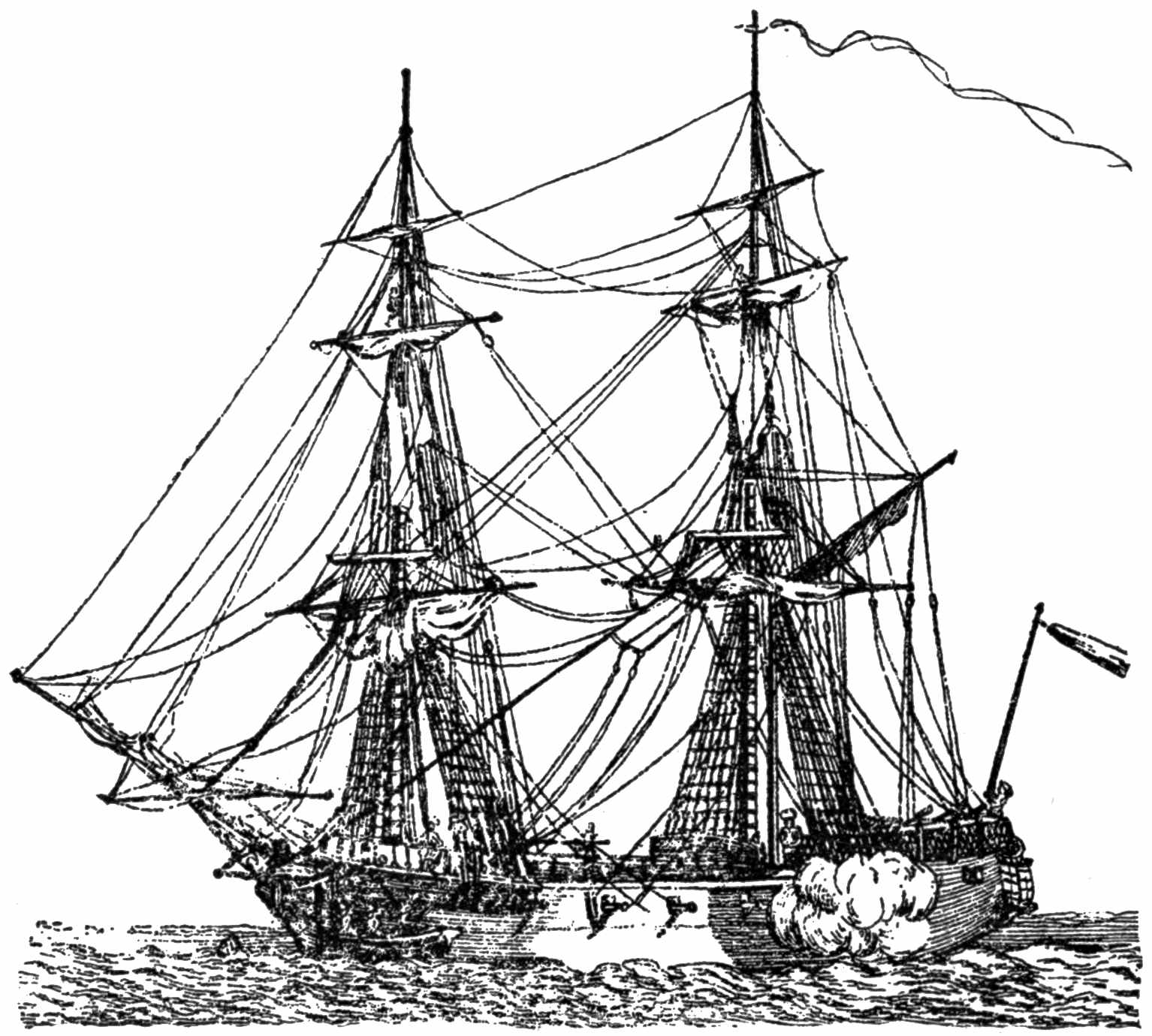 Meantime, while yet the Chesapeake’s anchor had not been gotten, the crew of the big British fifty-gun ship Leopard had made sail and gone to sea slowly—so slowly that she kept the Chesapeake constantly in sight.