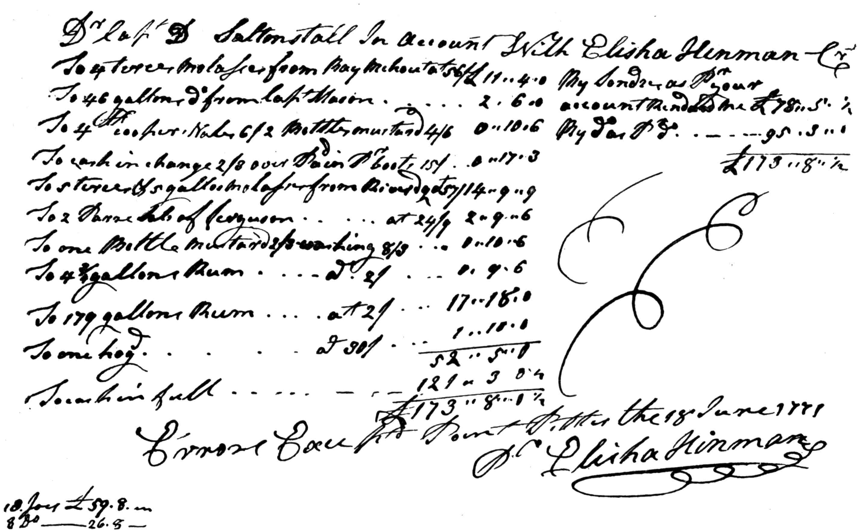 | Facsimile of Account between Dudley Saltonstall and Elisha Hinman. (From the original at the Lenox Library), | 67 |