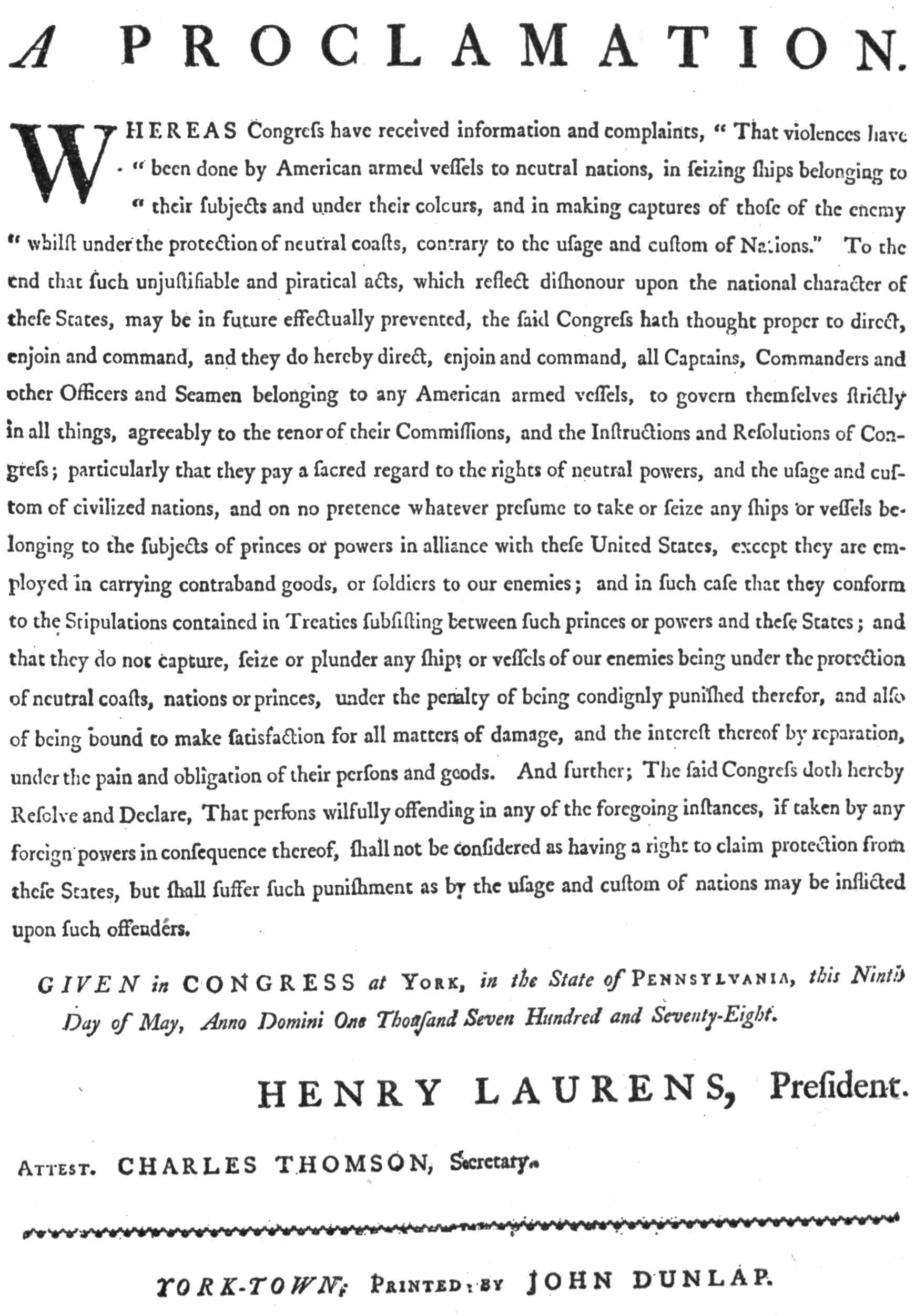 A ship of the American navy was to be treated as merchant ships had been treated.