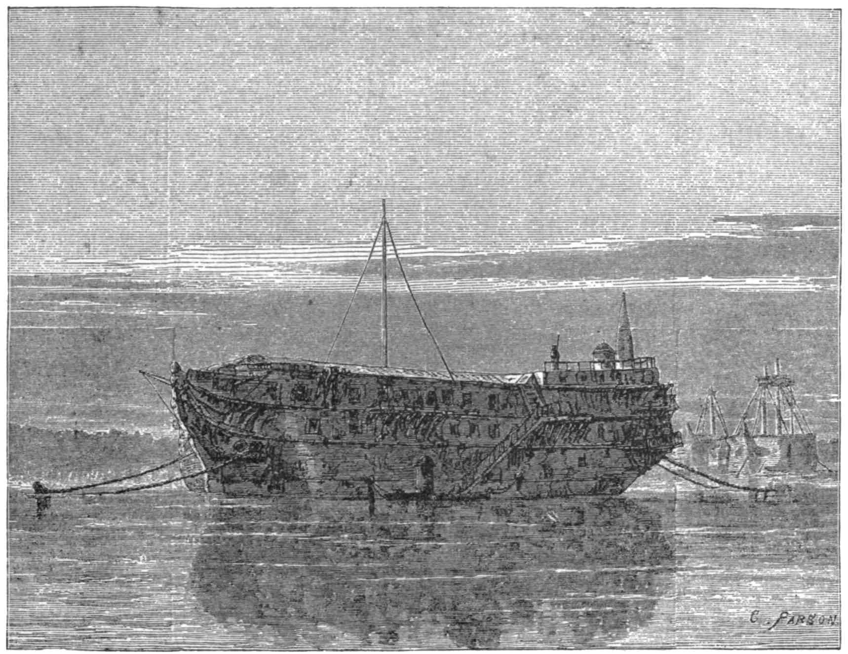Lest these stories seem to the humane reader to exaggerate the horrors of life on a British naval ship, the following facts from the London “Annual Register” for 1781 (page 41 of “Principal Occurrences”) will be found conclusive: The total number of men “raised” for the navy, 1776 to 1780, was 170,928. Of these, 1,243 only were killed by the enemy, while 18,545 “died,” and 42,069 deserted. More than ten per cent. of all who were “raised” “died,” while almost one-fourth of them all succeeded in deserting, in spite of the rigors of the imprisonment into which they were carried.