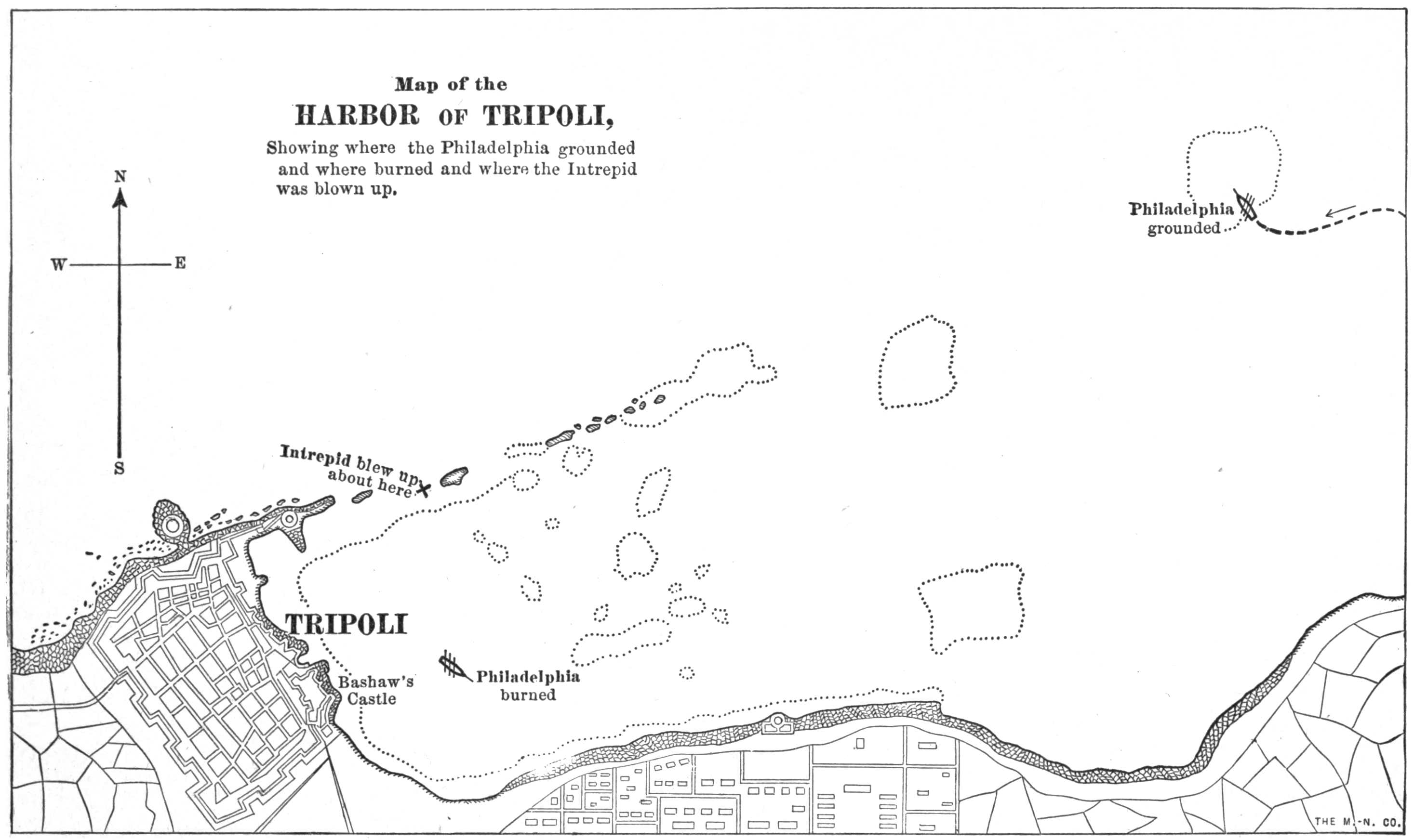 All night long the Americans cruised to and fro about the channel, firing guns and rockets at intervals, hoping against despair to find a survivor. When morning came to give a fair view of the harbor, one of the enemy’s gunboats was missing, and the Tripolitans were hauling three others, badly shattered, out on the beach. The ketch and all who sailed in her—the “men, whose names ought to live in the recollection and affections of a grateful country, and whose conduct ought to be regarded as an example to future generations”—had been blown to pieces.