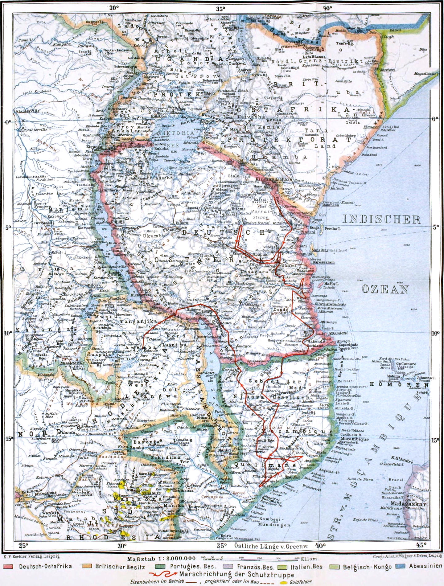 Kolonie. Schwierigkeit der Truppenbewegungen innerhalb des Schutzgebietes.
