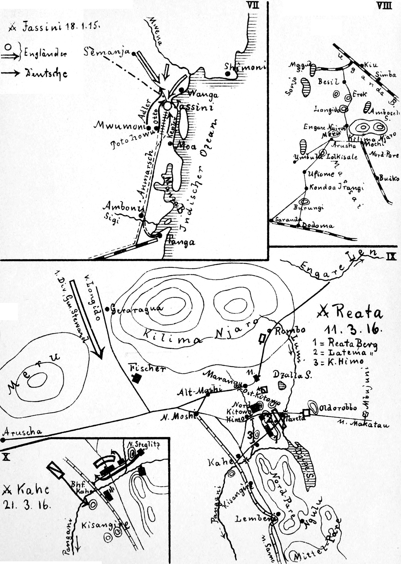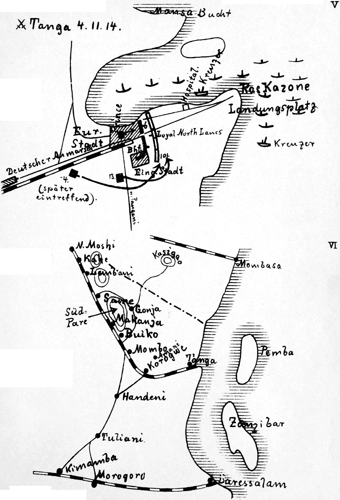 Erkundungen bei Tanga. Ein englisches Landungskorps erscheint.