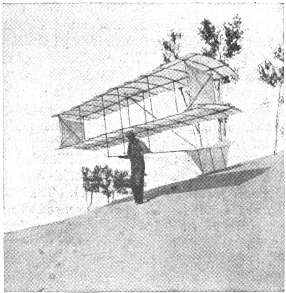The Wright Brothers, 1901.—Lillienthal was killed in a glide, having lost control of his apparatus while some distance above the ground. The Wright brothers read of his death and commenced thinking over the whole problem. Lillienthal’s method of balancing his large apparatus by the mere effect of swinging his legs appeared to them as a very inadequate means of control. They came to the conclusion that the immediate problem in artificial flight was the problem of stability, which they felt should be solved by an entirely different means than that employed by Lillienthal and Chanute. The work already done had demonstrated without question that support in the air had been established; with the addition of controllability the Wrights looked forward to doing something worth while in the way of artificial flight.