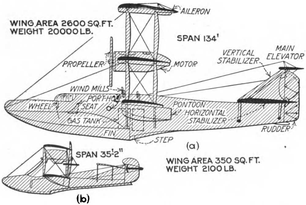 Langley’s Experiments in Aerial Navigation.—In all the history of aerial navigation one of the most romantic stories is that describing the scientific researches begun in 1887 by Langley and culminating in 1896 in the first really successful case of mechanical flight using a prime mover; continuing up to 1903 when this first successful machine, a model of 12-ft. span, was reproduced to full scale and manned for its trial flight by a human pilot; and ending with the destruction of this full-sized machine on launching, so that Langley missed the glory of being the actual discoverer of manflight only by a hair’s breadth, dying shortly afterward of a broken heart, as is conceded by those who knew him. If this full-scale machine had performed as successfully in 1903 as it actually did after being rebuilt and partly remodelled a decade later by the Curtiss company, Langley would have antedated the first successful flight made by the Wright brothers by a narrow margin of about 2 months.