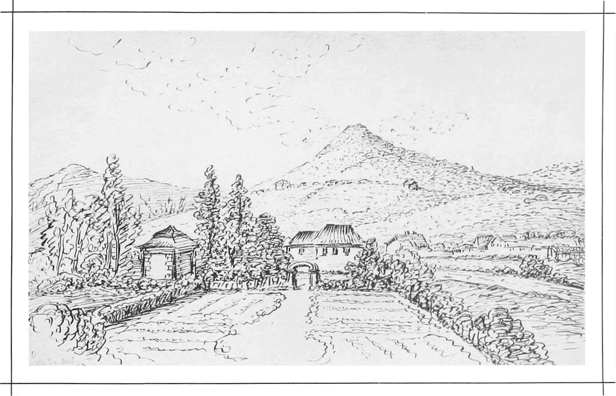 Aus Major von Knebels Fenster hinab in den Klippsteinischen Garten, das Häuschen links Besitzung von Schnaubert.
