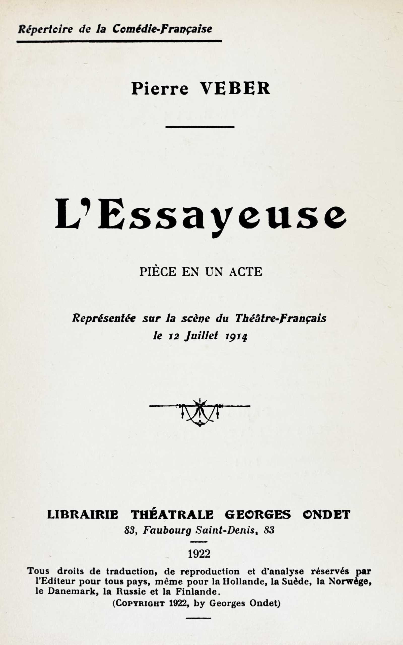| L’Essayeuse (Pierre Veber) (Prix, 3 fr.) | do |