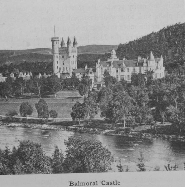 =Ballater= (1240), a small town beautifully situated on the north side of the river Dee, in a level space enclosed by high mountains, is 660 feet above sea-level. From Ballater coaches drive daily to Braemar, passing Balmoral Castle half-way. (pp. 2, 8, 18, 24, 27, 33, 154, 162, 164, 176.)