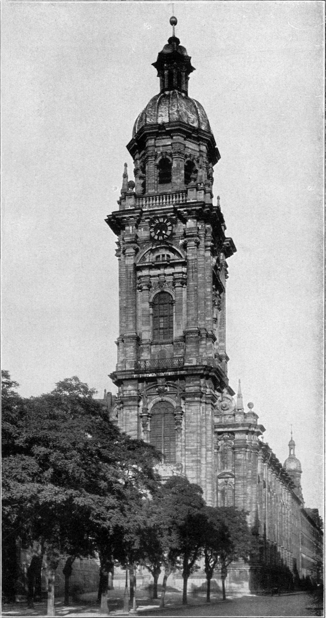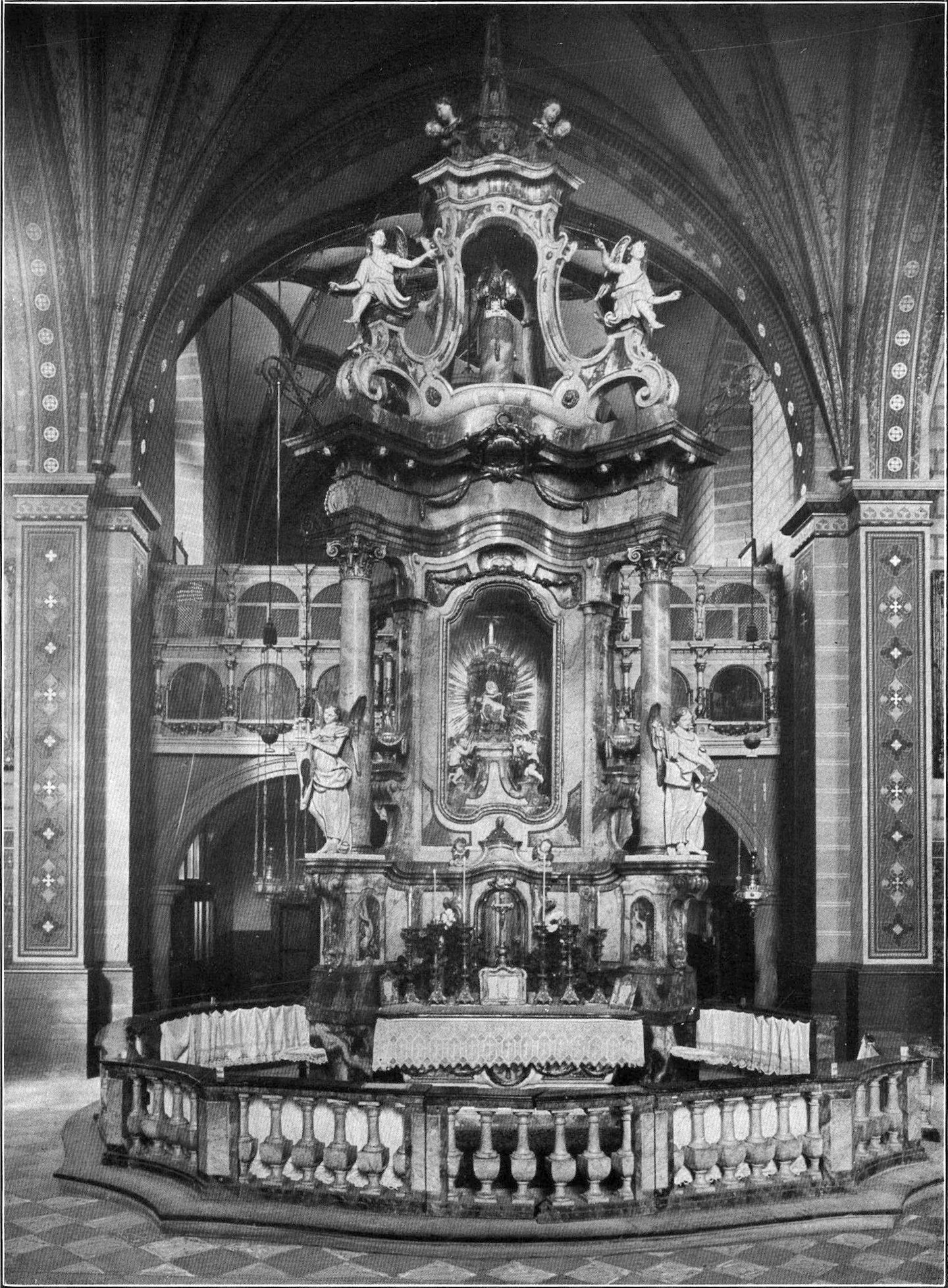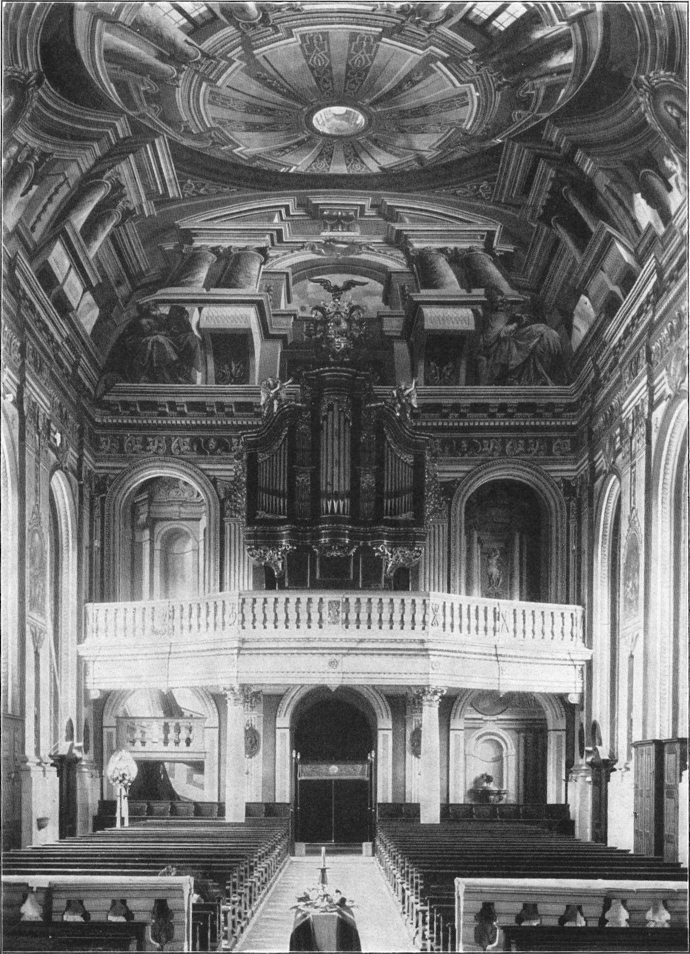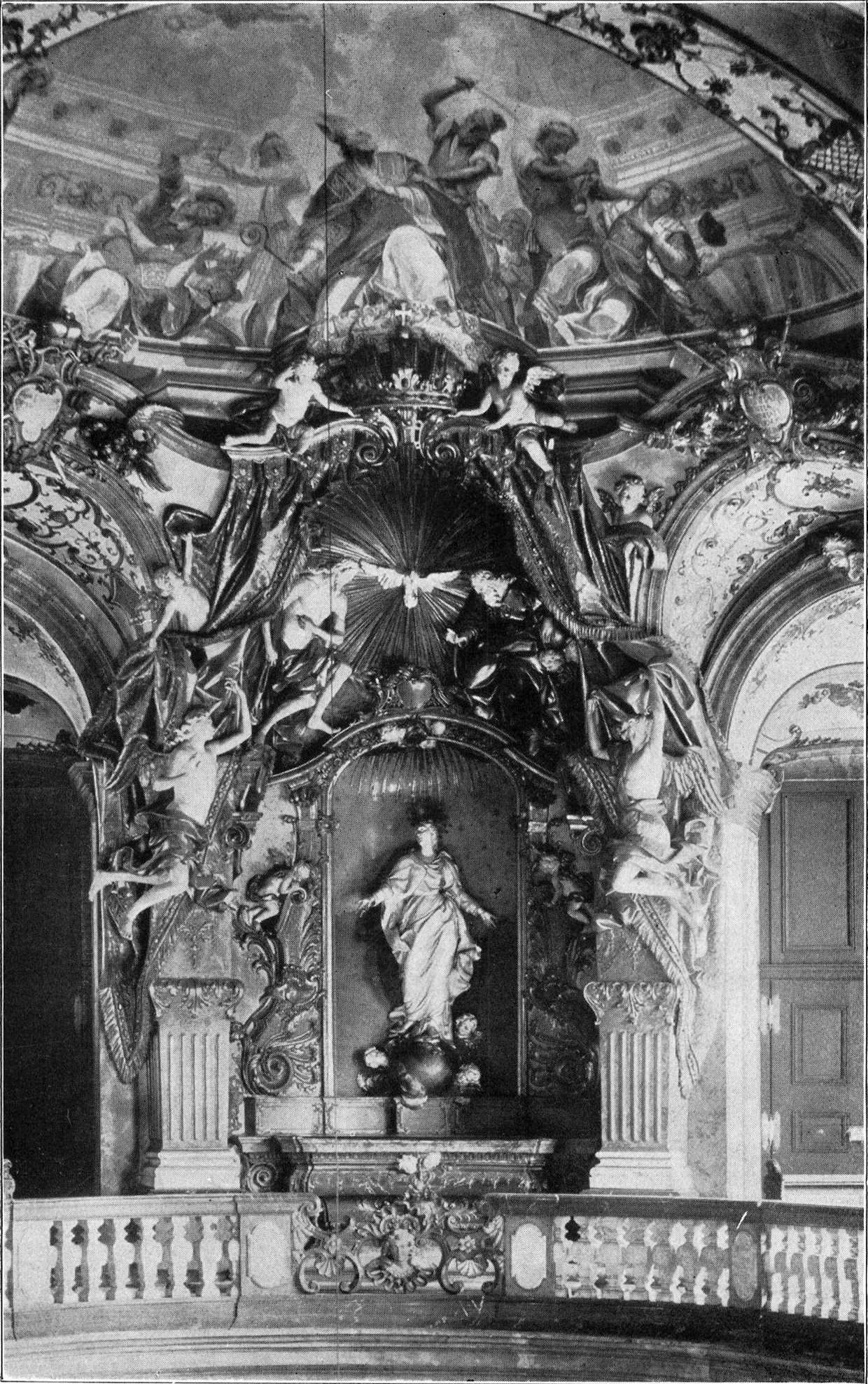 Als Ganzes ist die Hofkirche wiederum eine Glanzleistung der Gemeinschaftsarbeit, besonders auch was ihre hervorragende Ausstattung anbelangt, bei der Hildebrand, Antonio Bossi und Rudolf Byß hauptbeteiligt sind. Alle Einzeldinge sind aus dem Sinne des Raumes gestaltet, aus dem Willen zum äußersten Einheitskunstwerk und seinem Ausdruck, der alles erfüllenden hinreißenden Festlichkeit. Jeder Gegenstand und jeder Zierat biegt und formt sich unter der wehenden Bewegung, die innerhalb eines starren gegebenen Rechteckes durch die kunstvoll hineingestellte Raumschale hervorgezaubert wird. Staunenswert ist die gemeinsame Stilgesinnung, die alles trägt, bewundernswert aber auch die persönliche Leistung aller einzelnen Meister, deren sich Würzburg damals rühmen konnte. Proben ihres Könnens zeigt noch manches Würzburger Gotteshaus, wie das der Augustiner mit seinen[S. ix] glänzenden Altären oder St. Peter, dessen formsprühende und doch gebändigte Kanzel unvergleichlichen Reiz verstreut.
