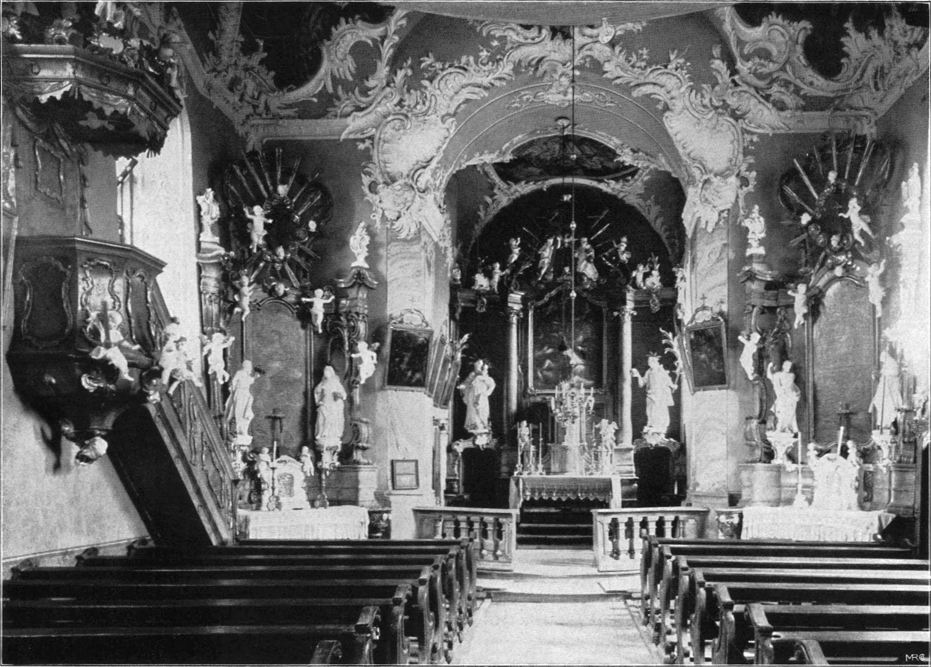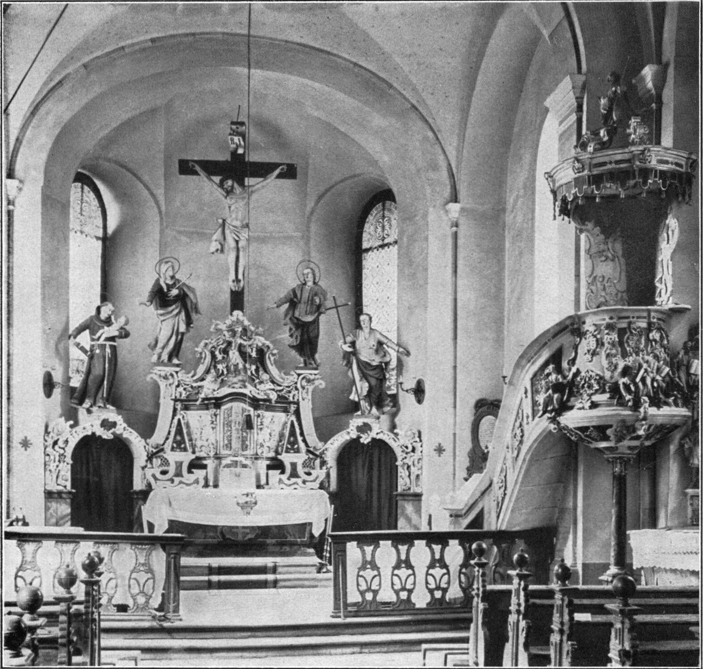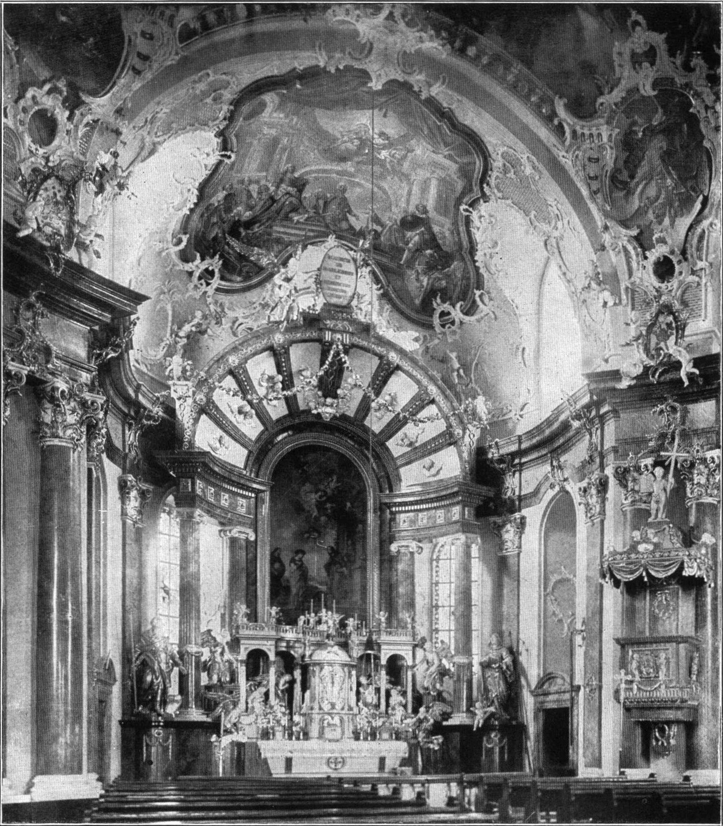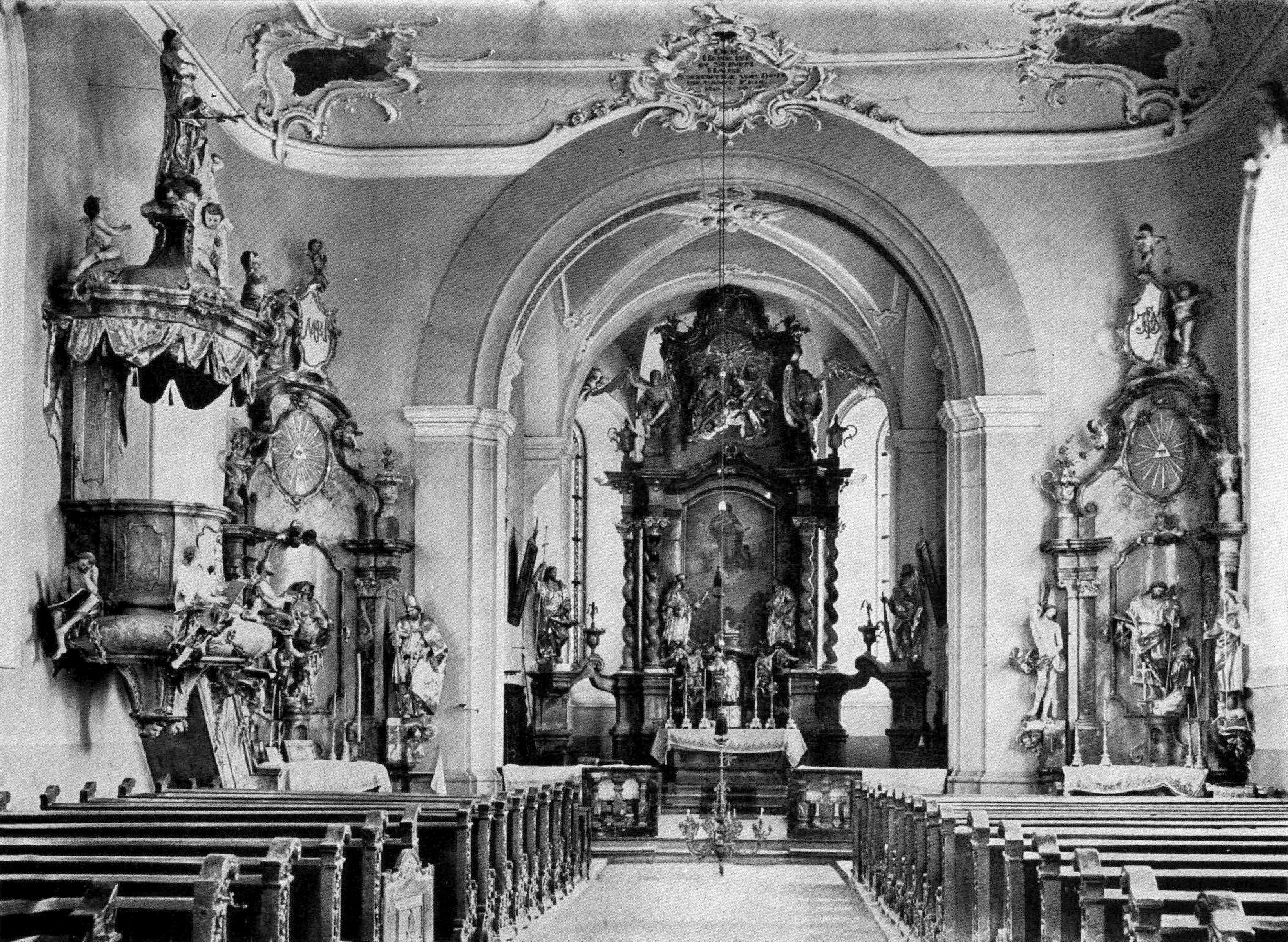 Diese Höhe und Breite des damaligen Würzburger Kunstschaffens strahlt natürlich weit ins Land hinaus. Die Zeichenstube Balthasar Neumanns und seines Kreises, worunter Johann Michael Fischer besonders hervorragt, hat damals vielen Dörfern neue Kirchen gegeben. Aber das Land selbst besaß ebenfalls tüchtige Meister, die den in der Hauptstadt gefundenen Kirchentypus zu ergreifen und mit persönlicher Empfindung zu füllen wußten.