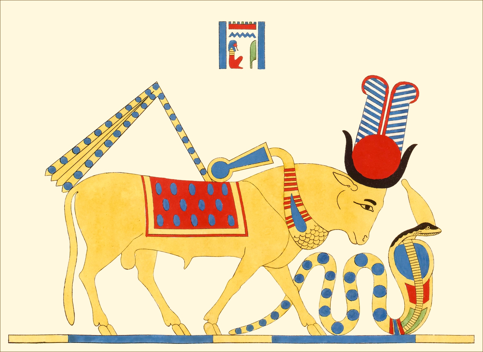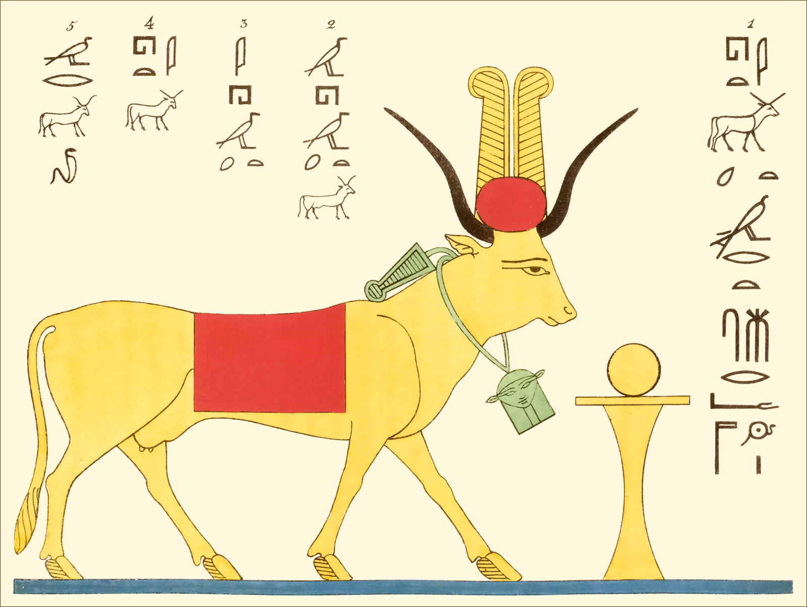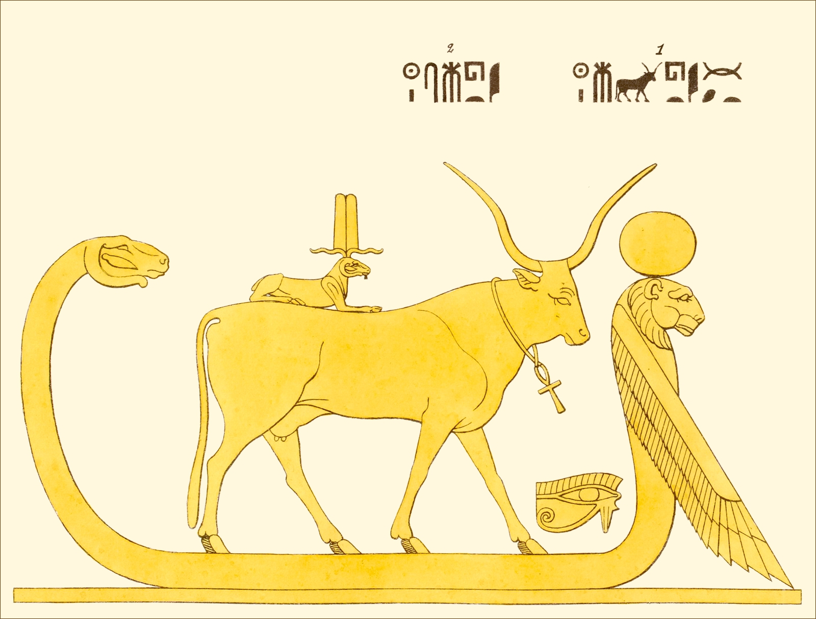 Le bélier, d’après les idées des Égyptiens, était un animal remarquable, surtout par sa tête dans laquelle réside sa principale force; et comme il est aussi le chef et le conducteur du troupeau, il devint pour eux le symbole de la prééminence, de la principauté, dont ses cornes furent aussi l’emblême chez plusieurs nations orientales; c’est pour cela que les Égyptiens, selon Plutarque, le placèrent à la tête des animaux du zodiaque, et que ce quadrupède fut spécialement consacré au chef 4 des dieux, au Seigneur suprême, à Amon, dont les représentations empruntent la tête de cet animal, de la même manière qu’on verra tous les dieux Égyptiens figurés sous une forme humaine, mais avec la tête des divers animaux, quadrupèdes, oiseaux, amphibies, reptiles ou insectes, qui leur furent spécialement consacrés.