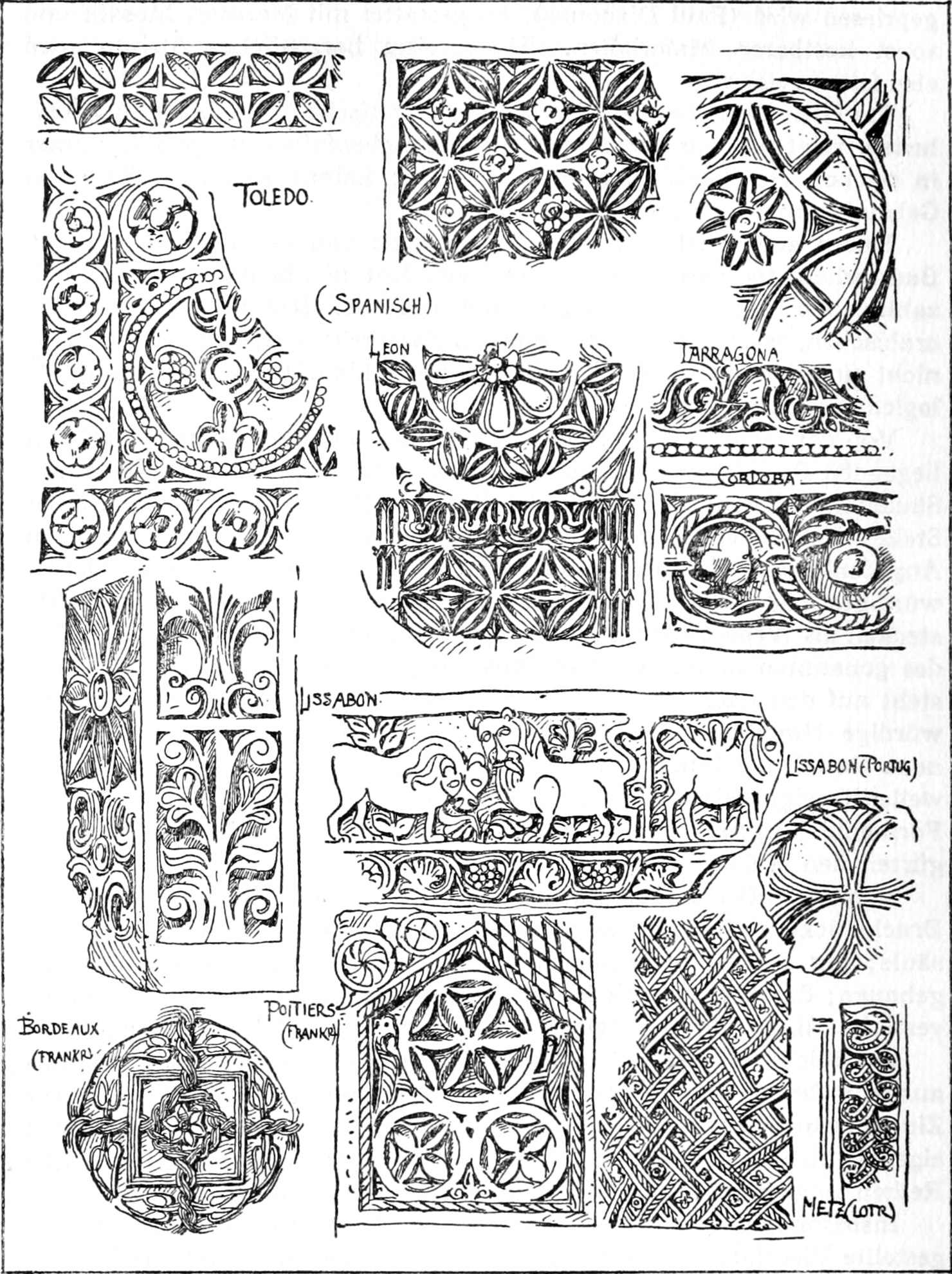 Überblicken wir dies ungeheure Gemälde, in dem wir die über das gesamte westliche und südliche Europa herübergefluteten germanischen Völkermassen vereinigt finden, so sehen wir vom 6. Jahrhundert an ganz Europa, mit Ausnahme des heutigen Rußlands und der eigentlichen Balkanhalbinsel, selbst die Nordküste Afrikas Germanen untertan oder von ihnen bevölkert; und so kann es nicht wundernehmen, daß damals eine völlig gleichartige und zwar germanische Kultur und Kunstauffassung, freilich in der Folge ganz verschwunden und gegenüber der südöstlichen so unendlich viel reicheren nicht beachtet, über alle diese Gebiete hin herrschte, von der Krim an bis nach Lissabon, von Nordskandinavien und England bis nach Karthago.