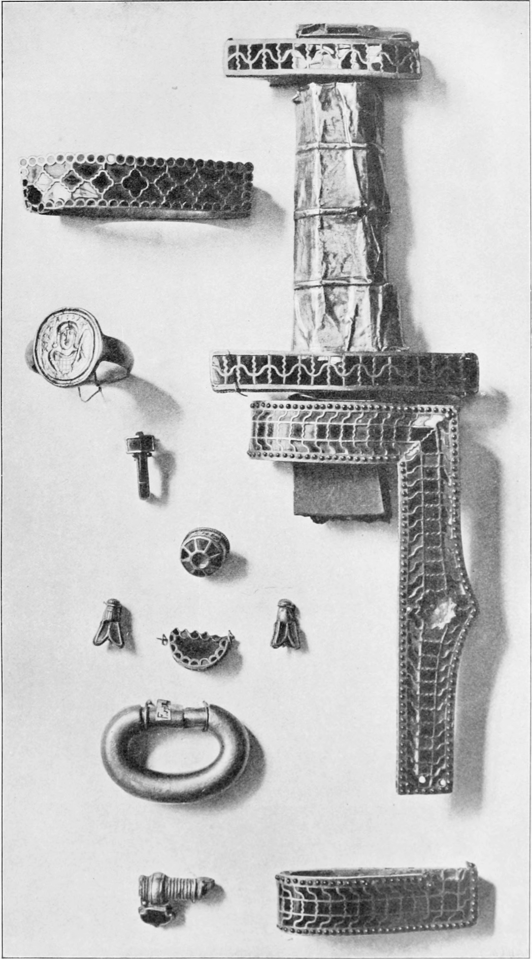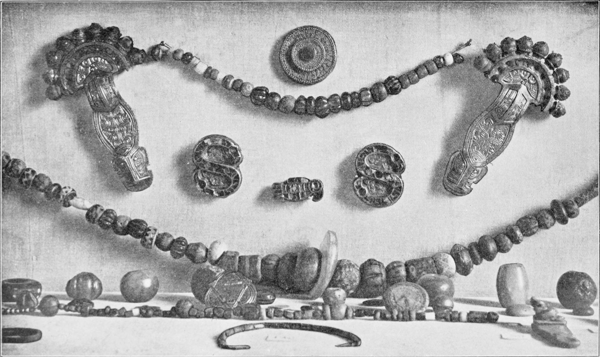 Mehr als anderes geben die Gräber und Kirchhöfe jener Völker hiervon Zeugnis; und in so reichem Maße, Jahr für Jahr so ungeheure Mengen der bemerkenswertesten Kunsterzeugnisse dem Tage wiederspendend, daß wir heute wahrhaft erstaunen über solche ungeahnte Fülle altgermanischen Werkes, vor allem aber über die unerwartete Einheit dieser Kunst, die, durchaus verschieden von aller anderen gleichzeitigen, nur wenig von ihr beeinflußt, beweist, daß der ungeheuren Völkermasse der Germanen einerlei Art des Geschmacks, einerlei Art sich zu schmücken, zu kleiden, zu waffnen, zu leben, gewiß auch zu wohnen und zu bauen eigen war.
