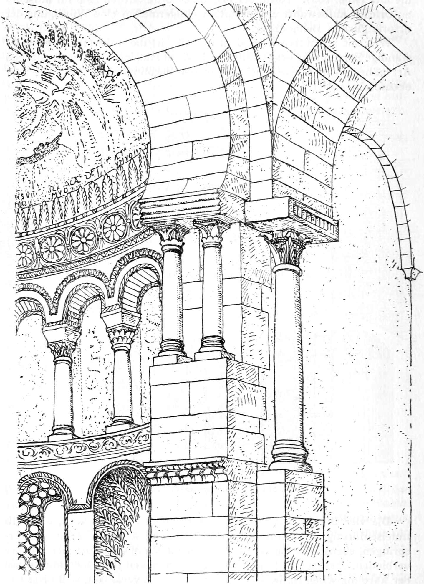 Pendentifs: dreieckige Gewölbeflächen zur Überleitung eines unteren eckigen Raumes in die Rundung einer Kuppel.